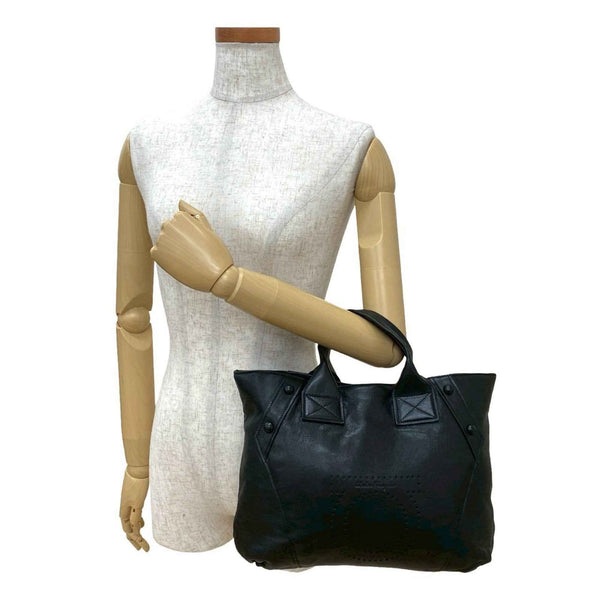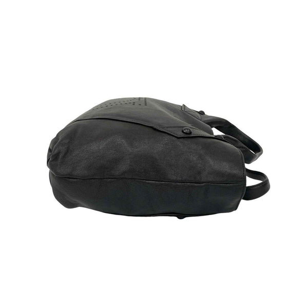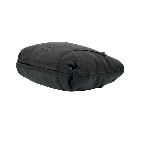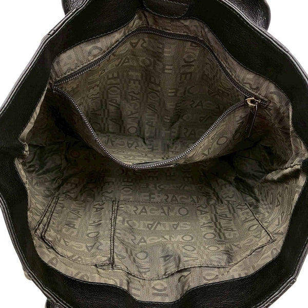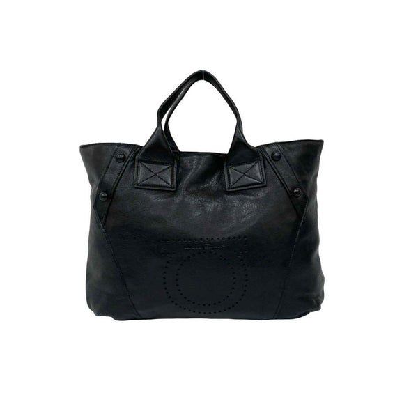 Salvatore Ferragamo Gancini logo perforated leather handbag in black, 82576