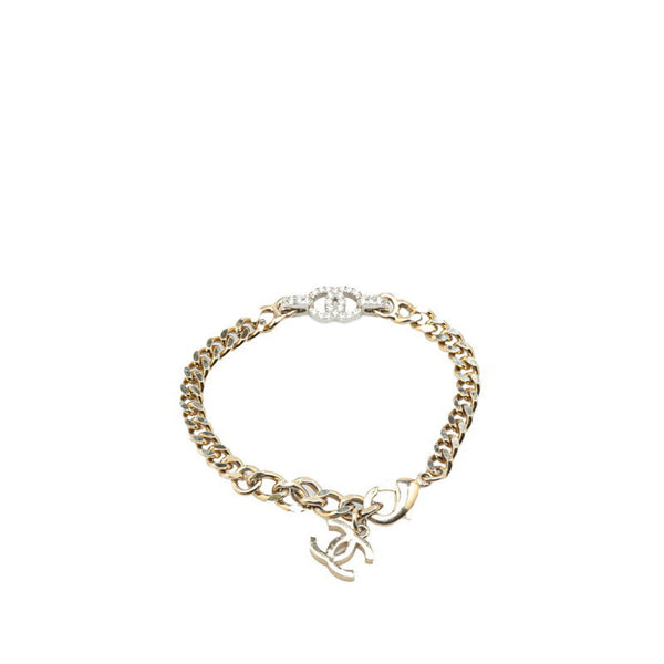 Chanel Coco Mark Rhinestone Chain Bracelet in Silver Metal for Women