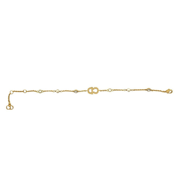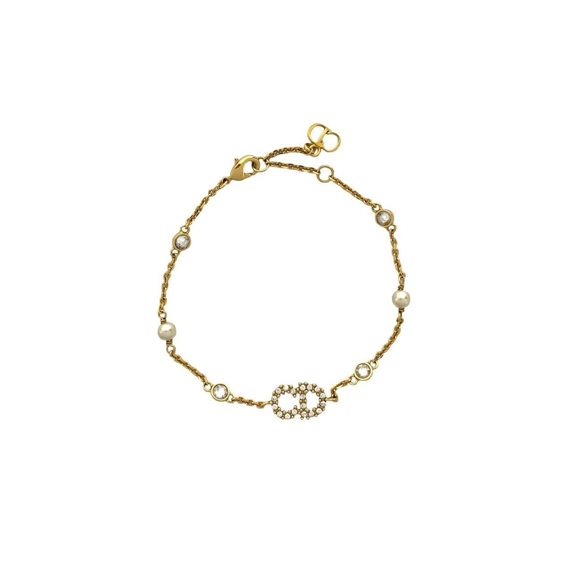 Christian Dior CD Logo GP Rhinestone and Faux Pearl Bracelet in Gold 04991