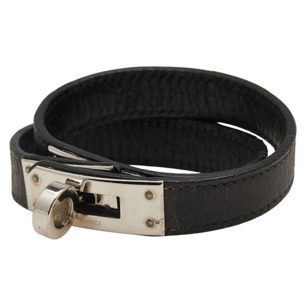 Hermes Hermès Kelly Double Tour Bracelet in Black and Silver Box Calf Leather for Women