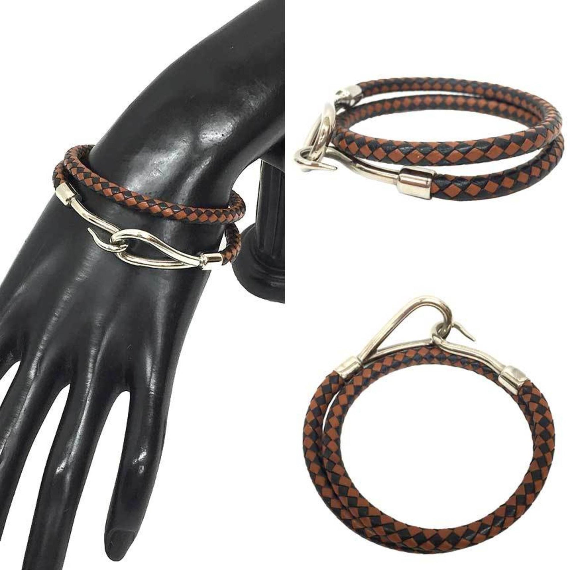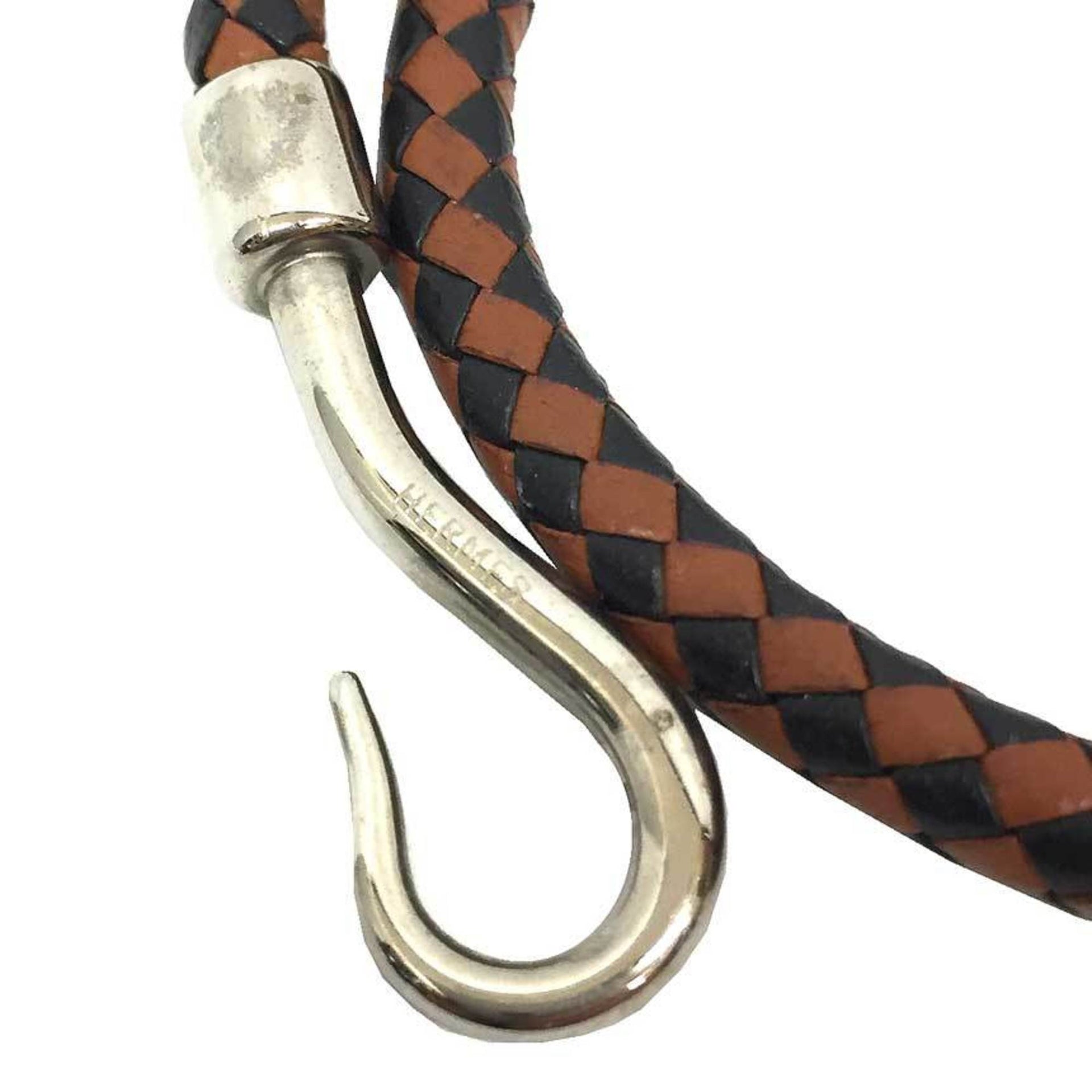 Hermes Jumbo Choker Double Bracelet Leather Intrecciato Two-Tone Men\'s Women\'s Black x Brown