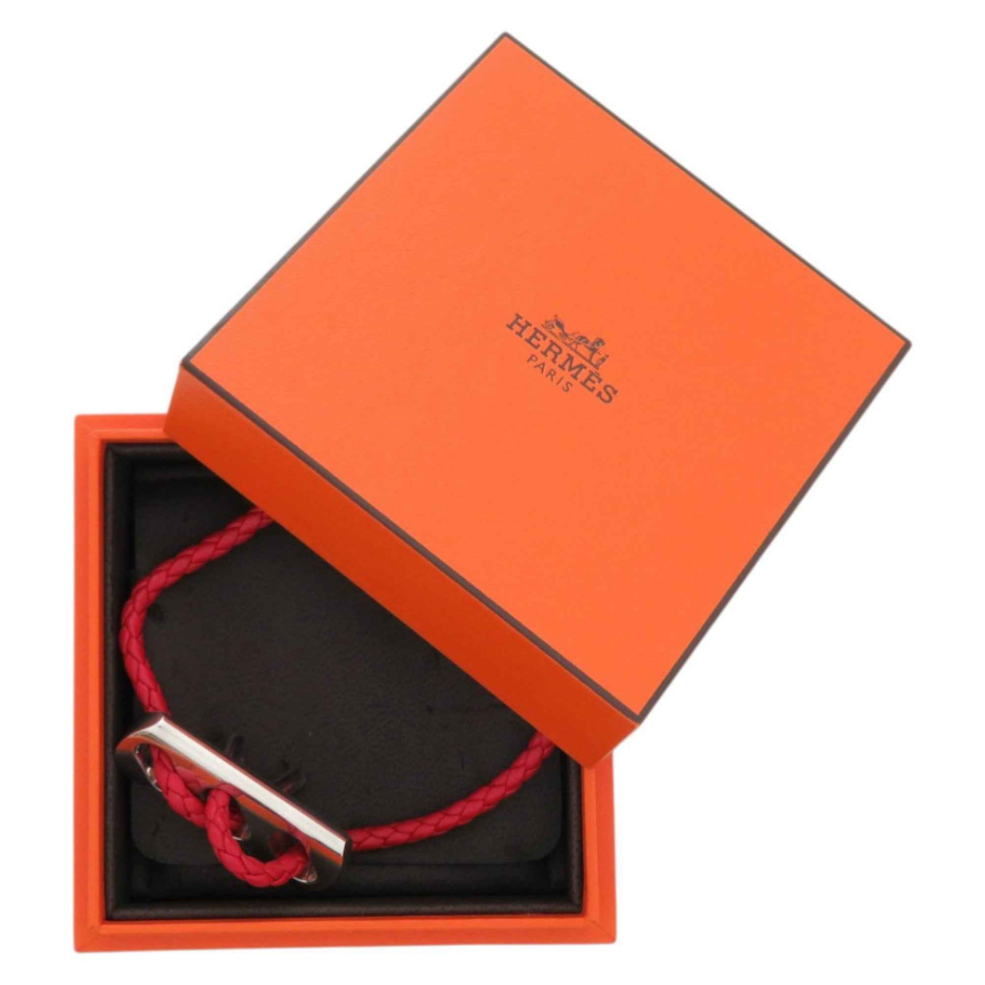 Hermes Leather Silver 925 Red Bracelet 0093 HERMES
