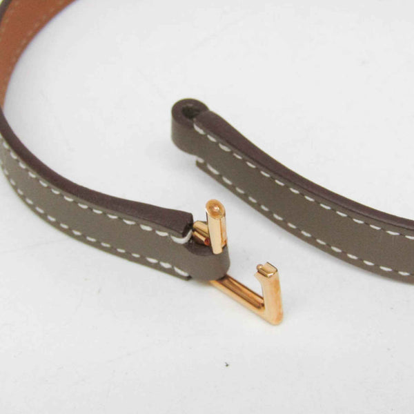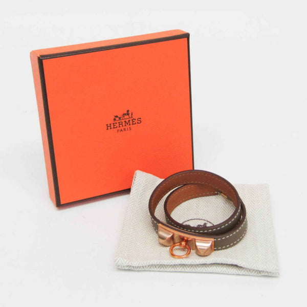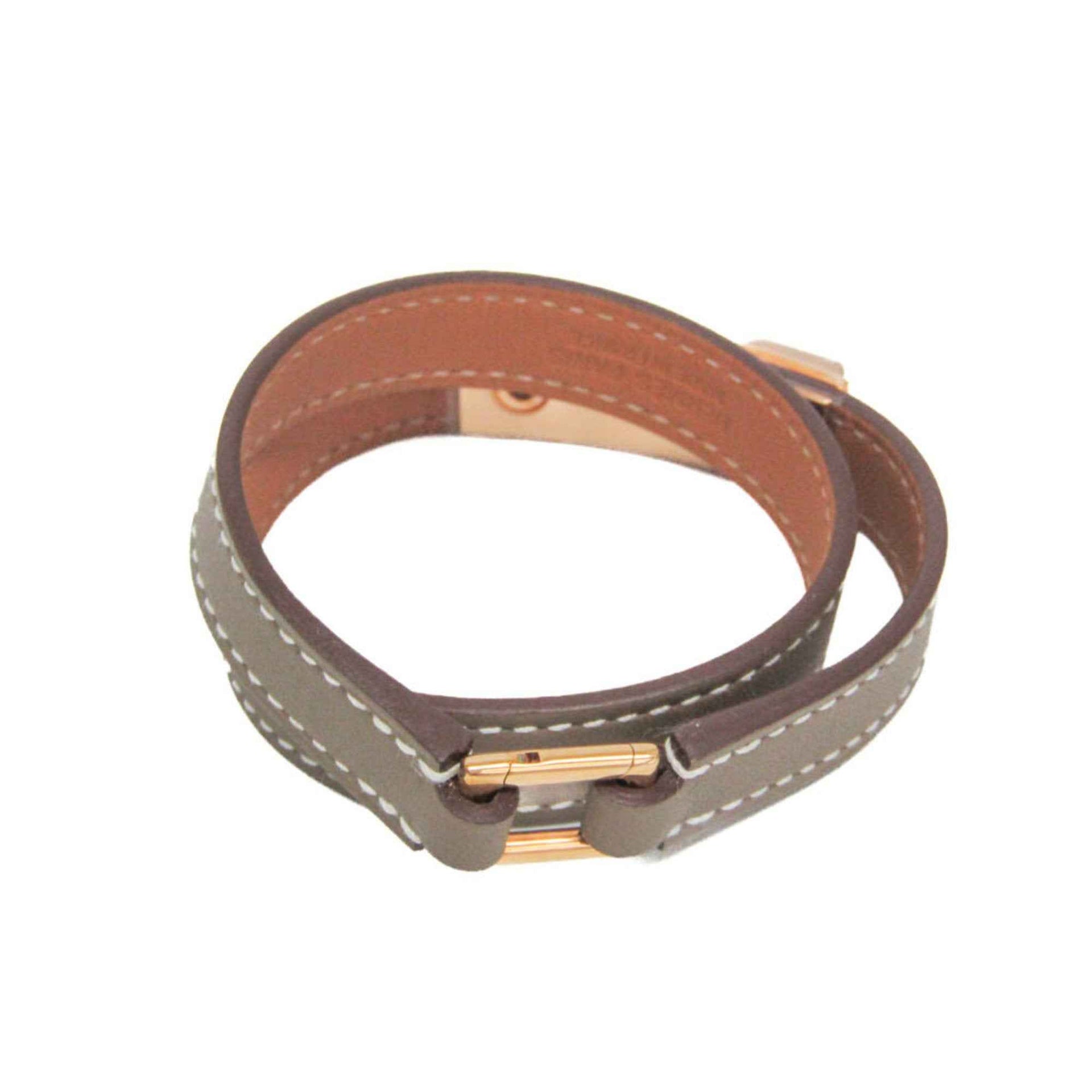 Hermes Rivale Double Tour Leather,Metal Wrap Bracelet Pink Gold,Gray
