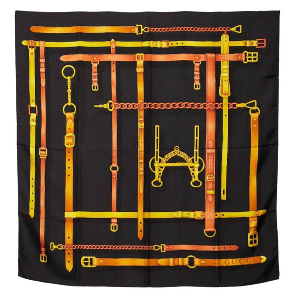 Gucci belt-patterned scarf, black and multicolored silk, women\'s.