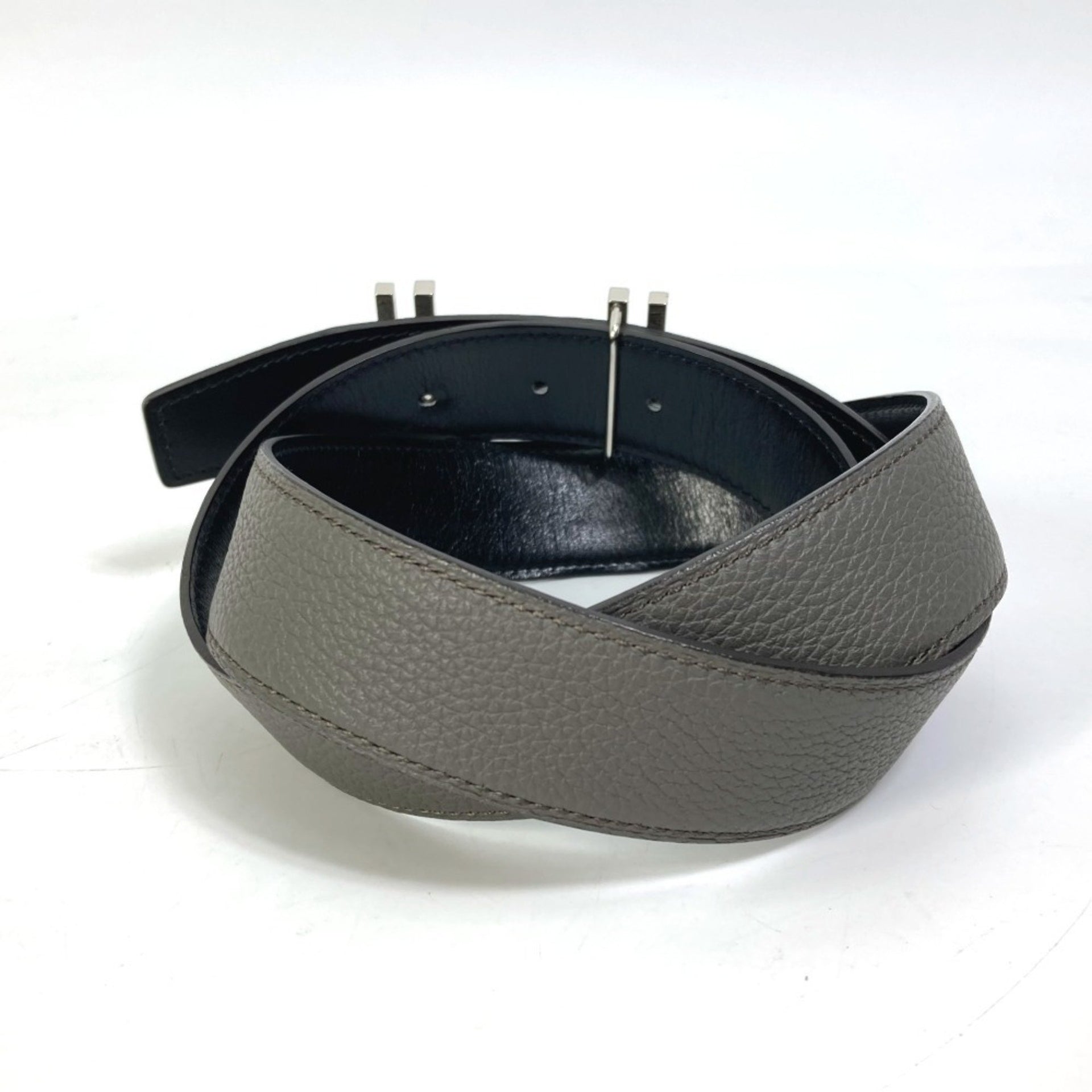 HERMES H Belt, Ash Au Carré Togo, Women\'s, Blanc/Noir Gray