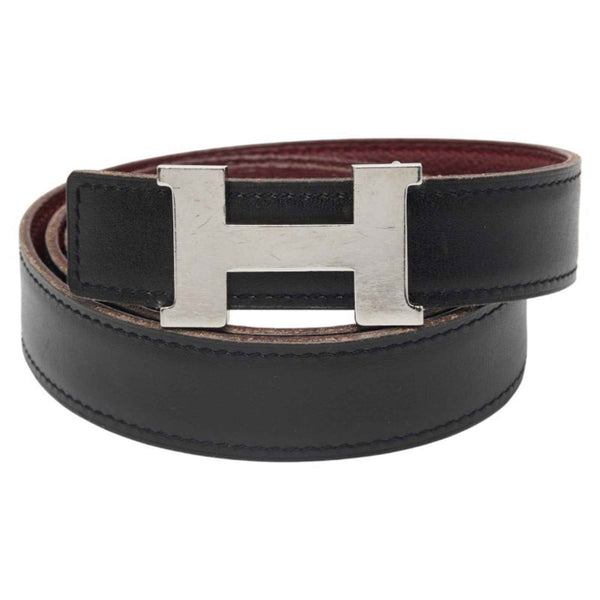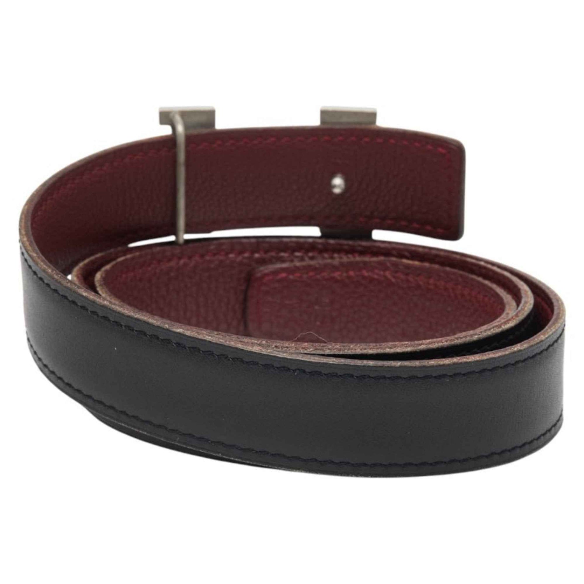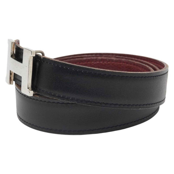 Hermes Hermès Constance H-buckle reversible belt, size 80, black, wine red, silver hardware, box calf scarf, Taurillon Clemence leather, women\'s.