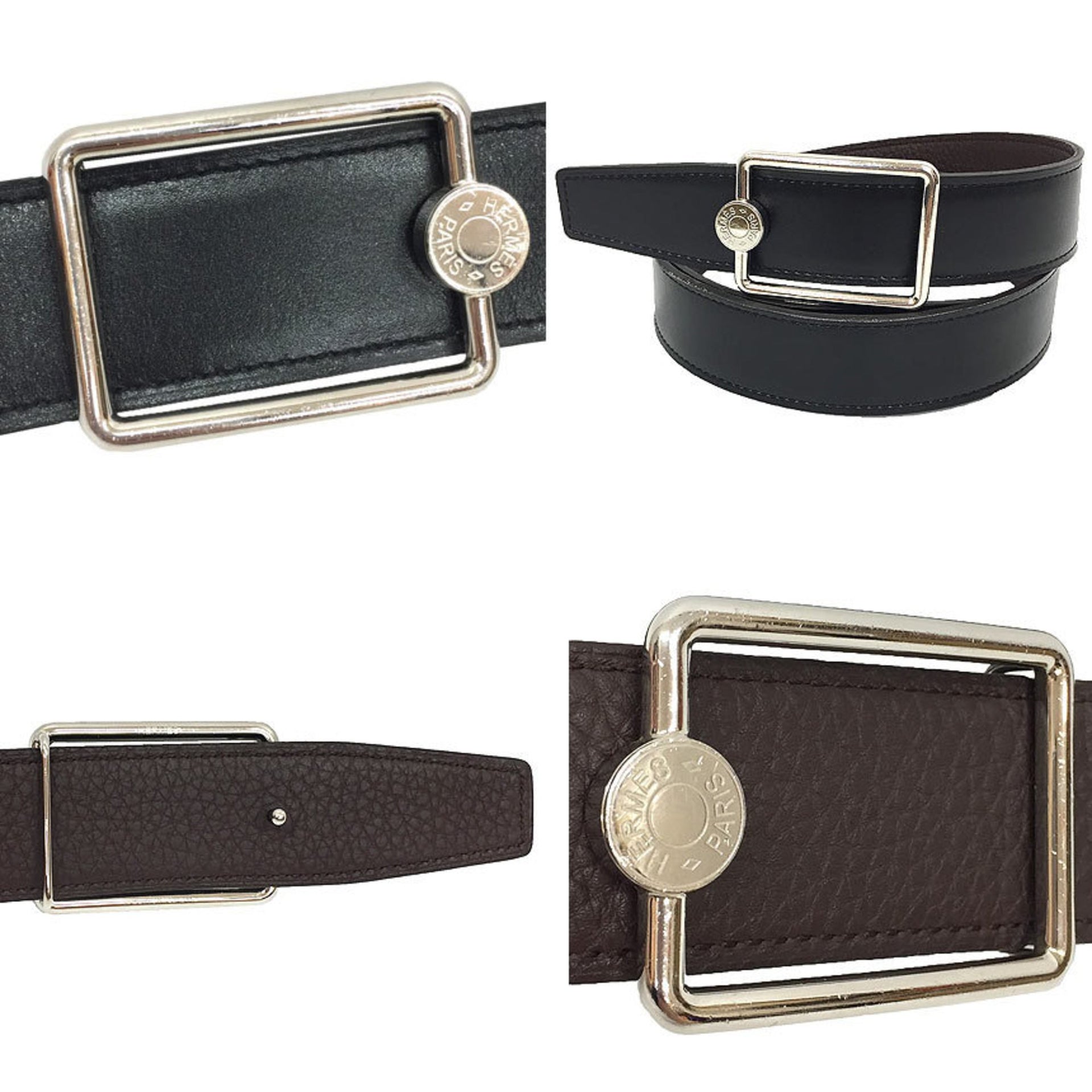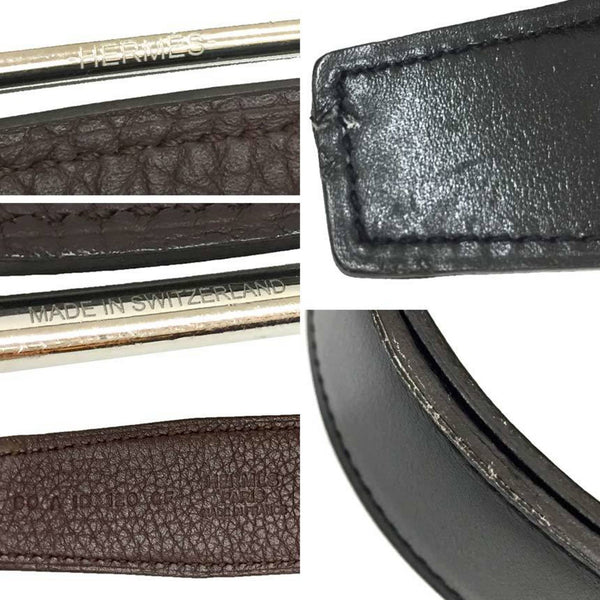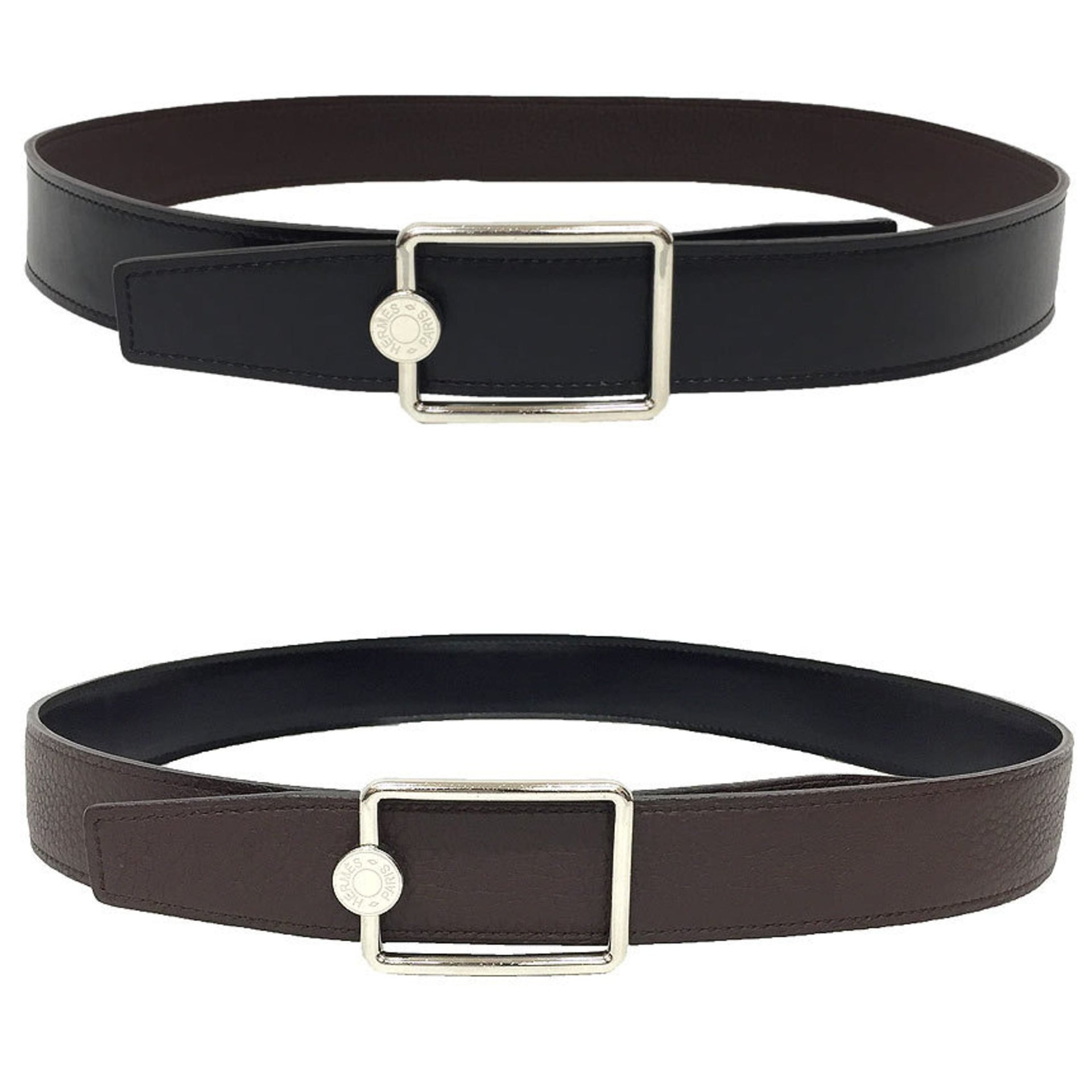 Hermes Hermès Oscar Serie Belt, size 80, A-stamped, reversible leather, black and dark brown box calf leather with Togo, buttons, silver buckle