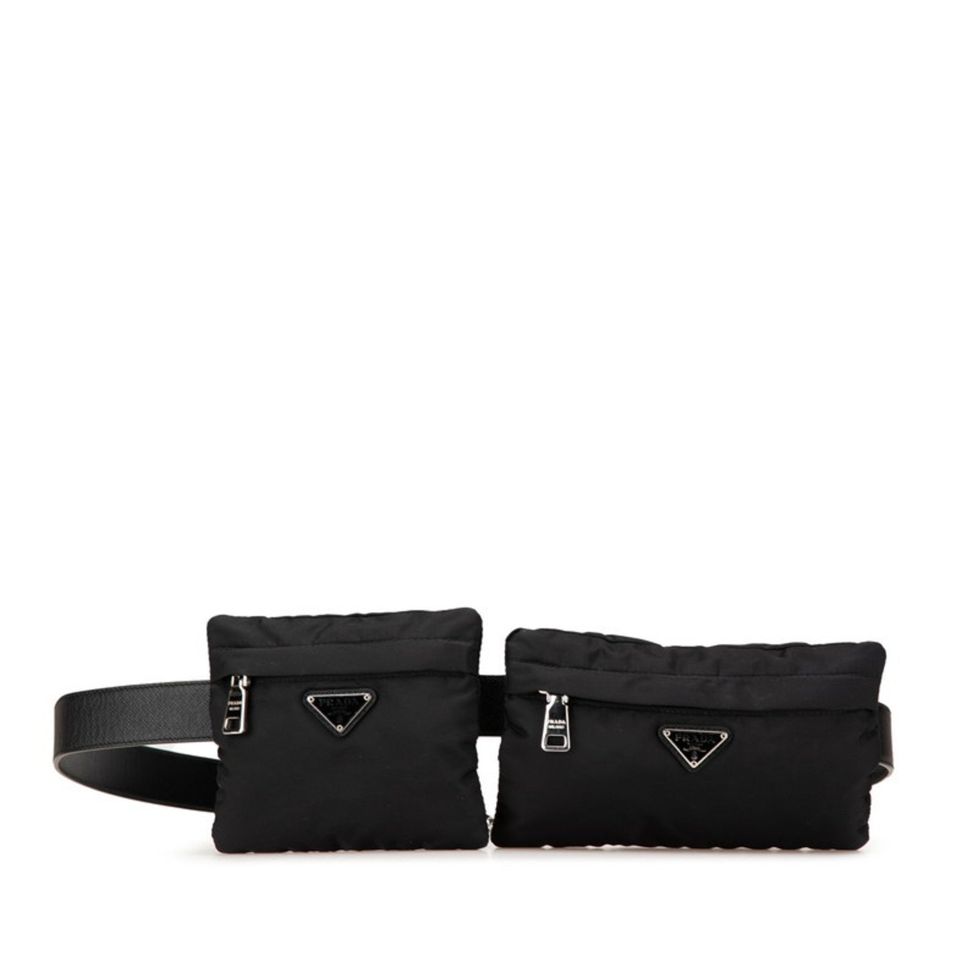 Prada Men\'s Belt Bag with Chain, Size 38 95 2CN212, Black Nylon