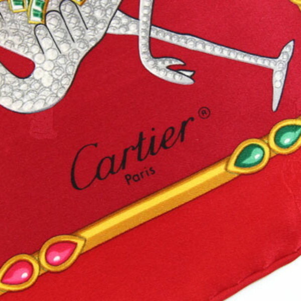 Cartier scarf/muffler, red, 100% silk, large, for women.