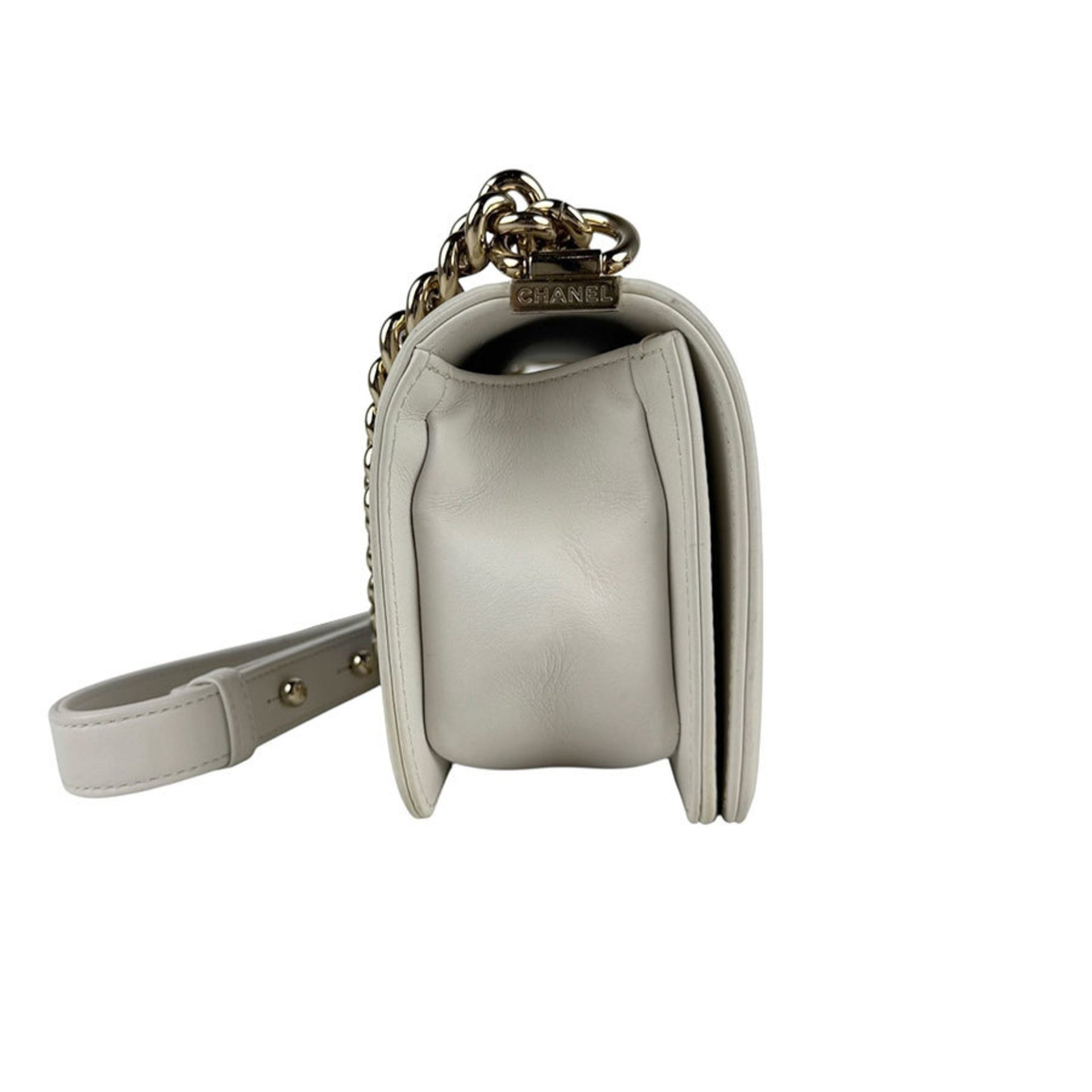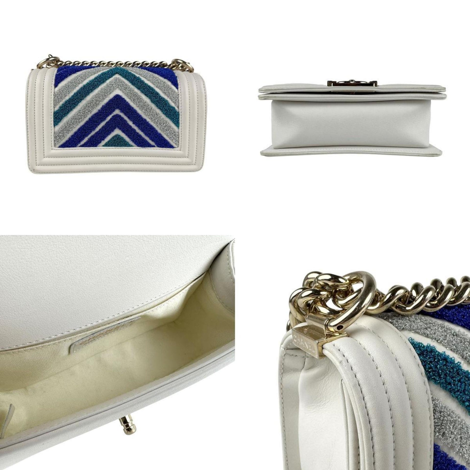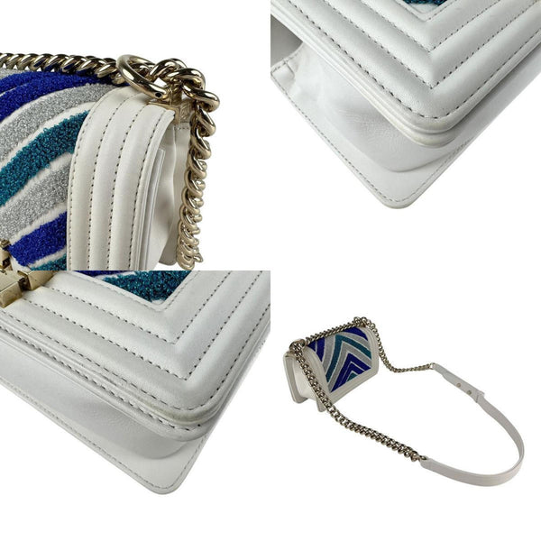 CHANEL Boy Chanel Leather Shoulder Bag, Ivory, Blue, Silver, Gold, Women\'s, Z6383