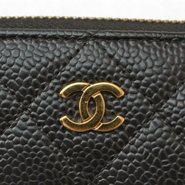 CHANEL Long Wallet/Matelasse Caviar Skin A50097 Black/Gold