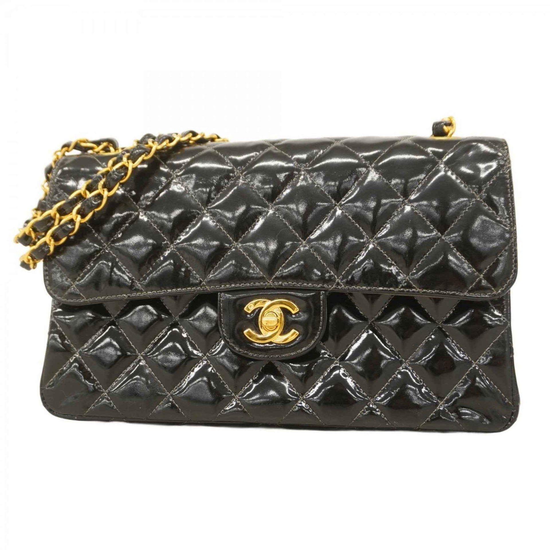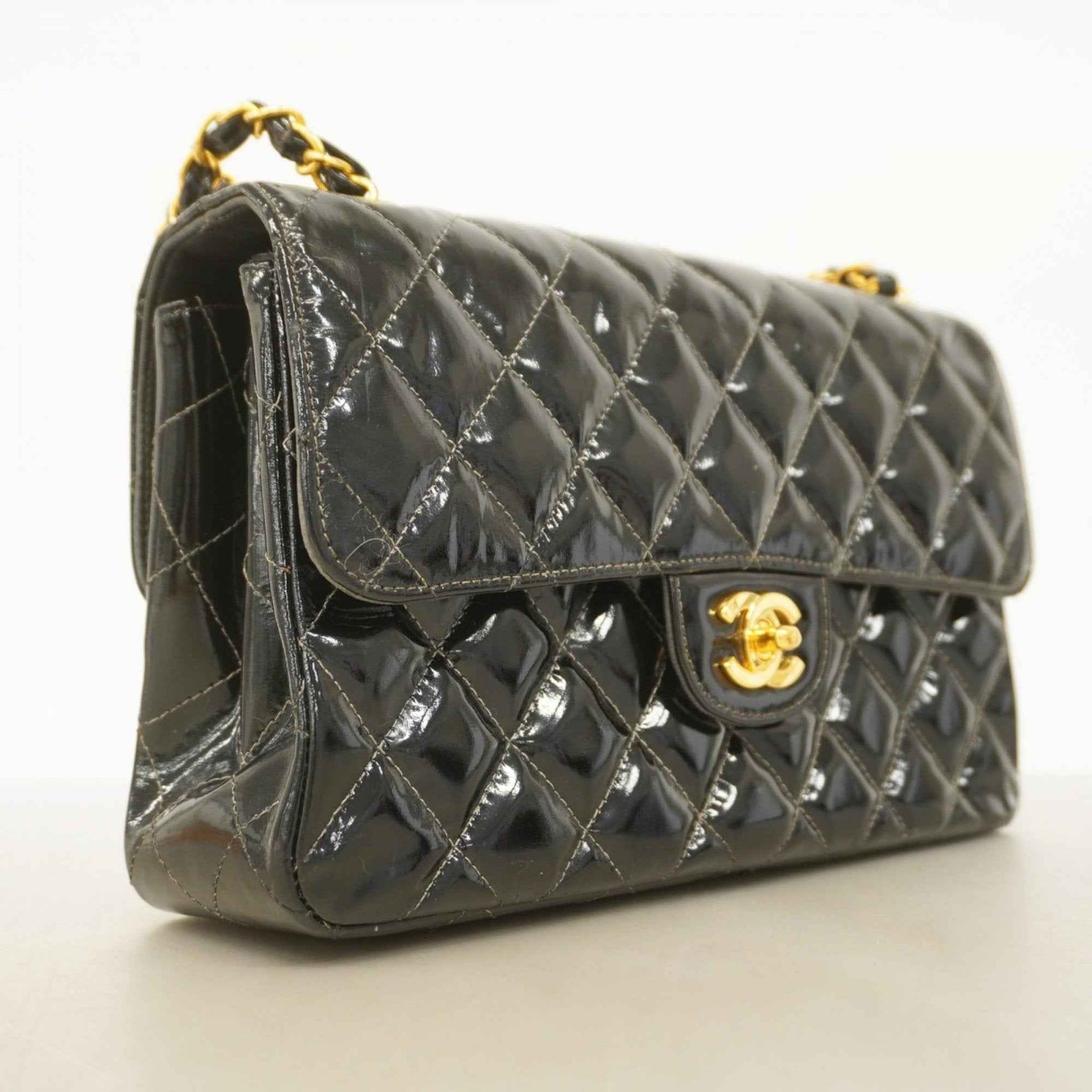 Chanel Matelasse Shoulder Bag with Double Chain, Double-Face Patent Leather, Black, Women\'s