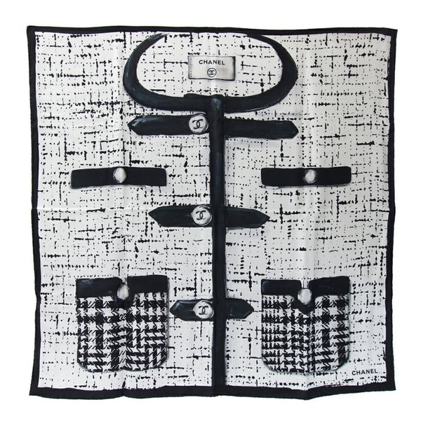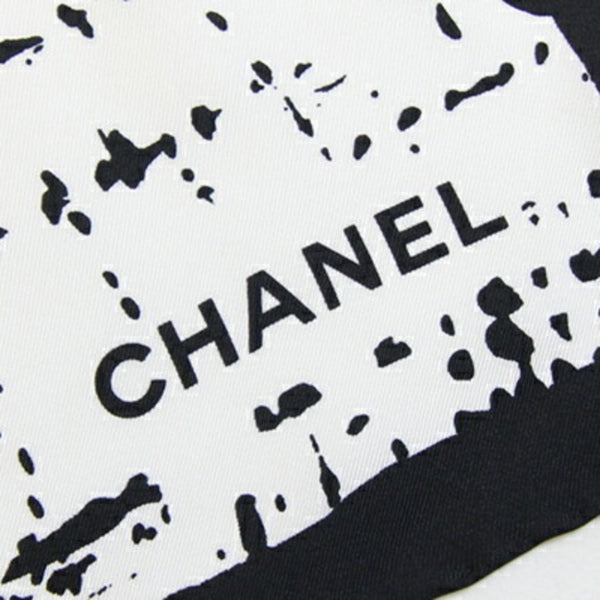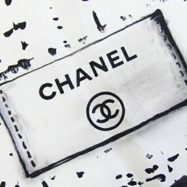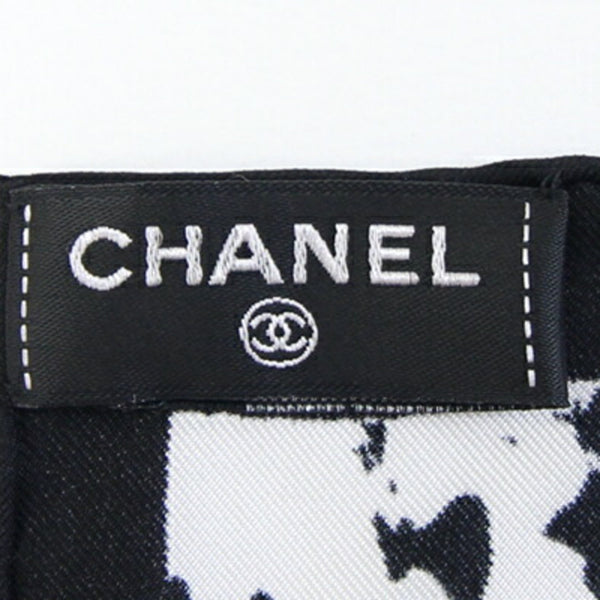 Chanel scarf, muffler, white and black, 100% silk, large size, stole, Coco mark, women\'s, CHANEL
