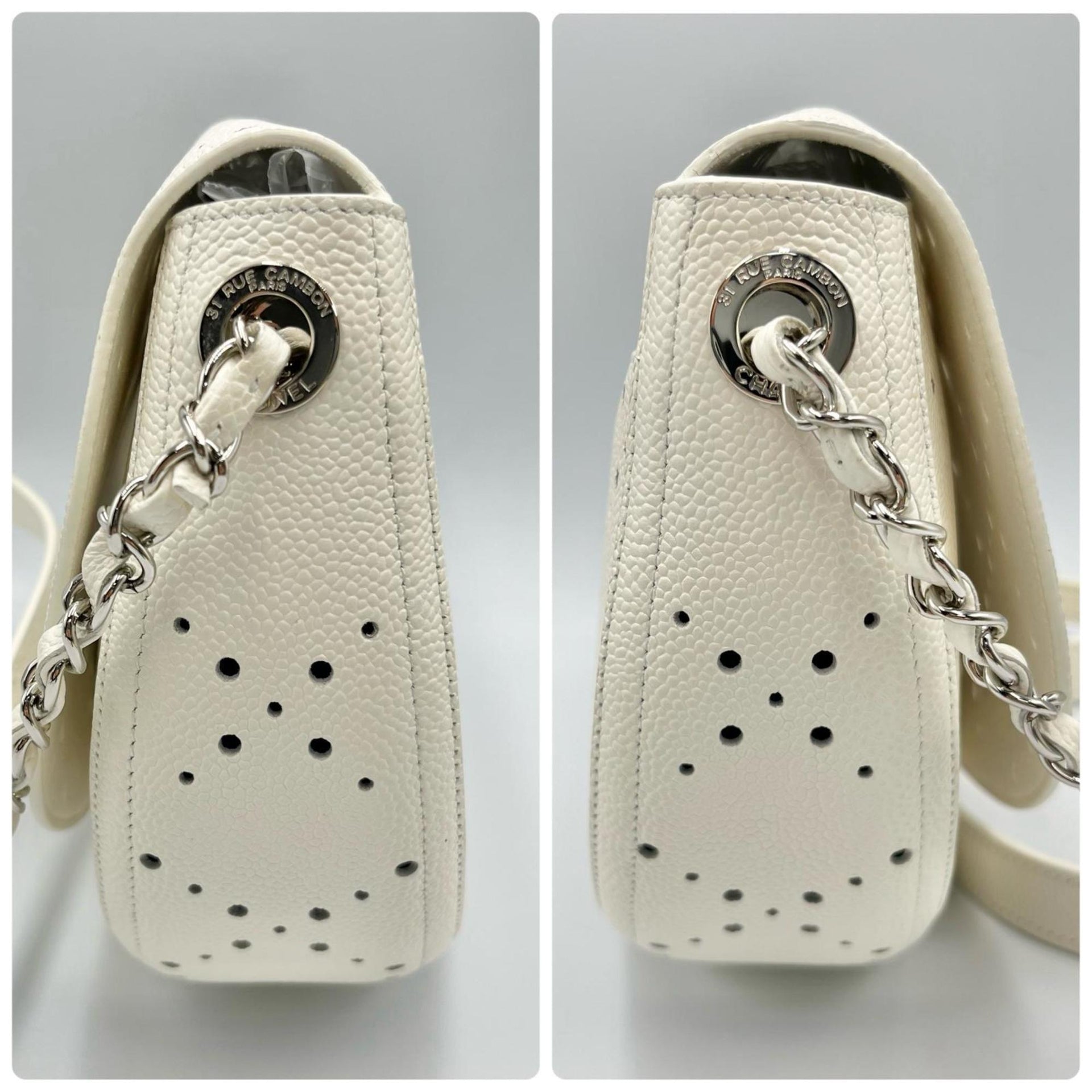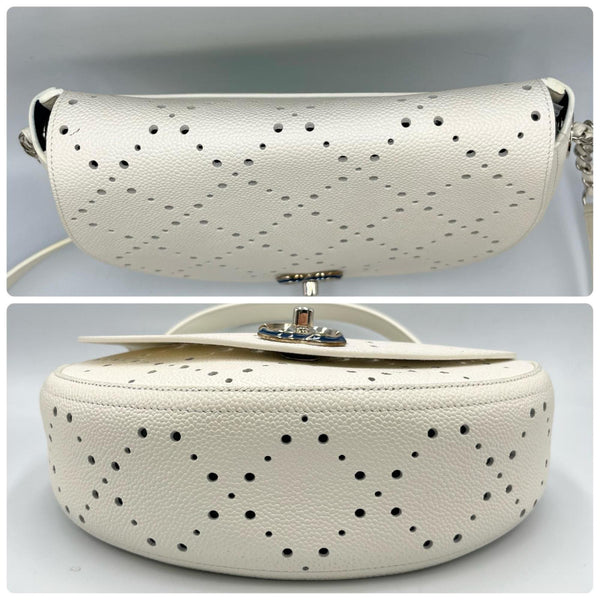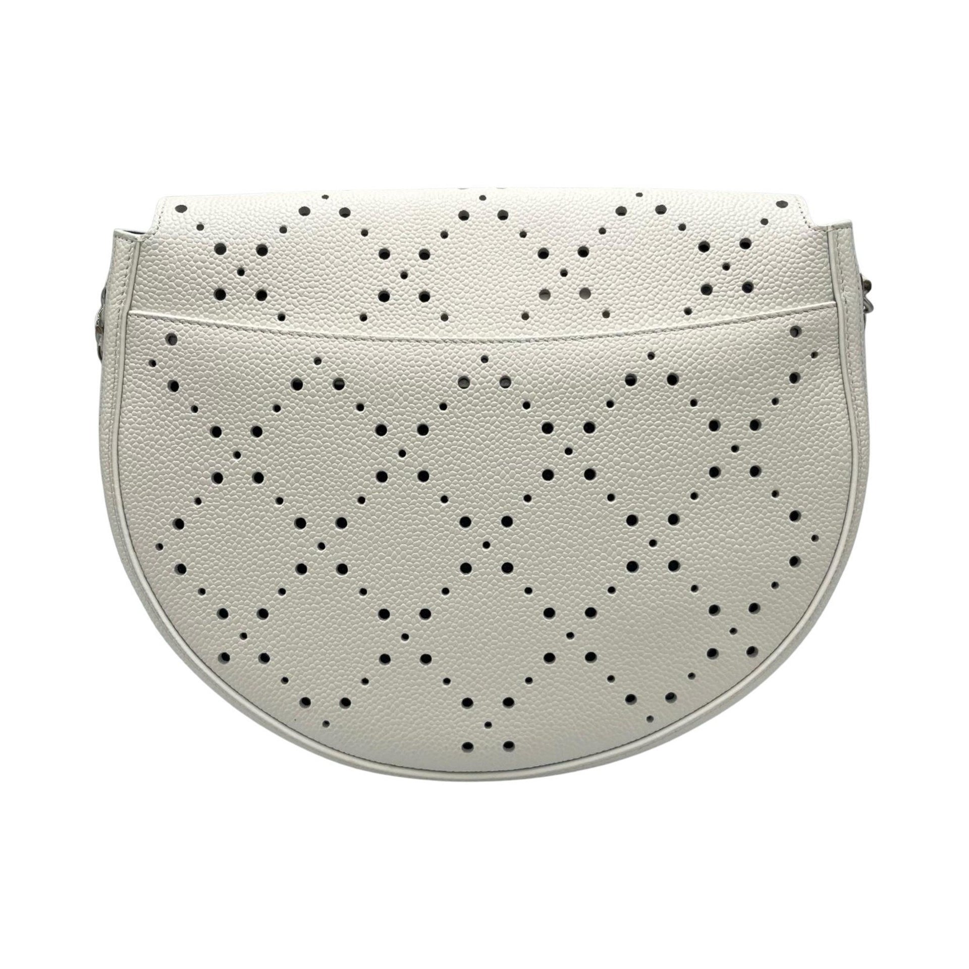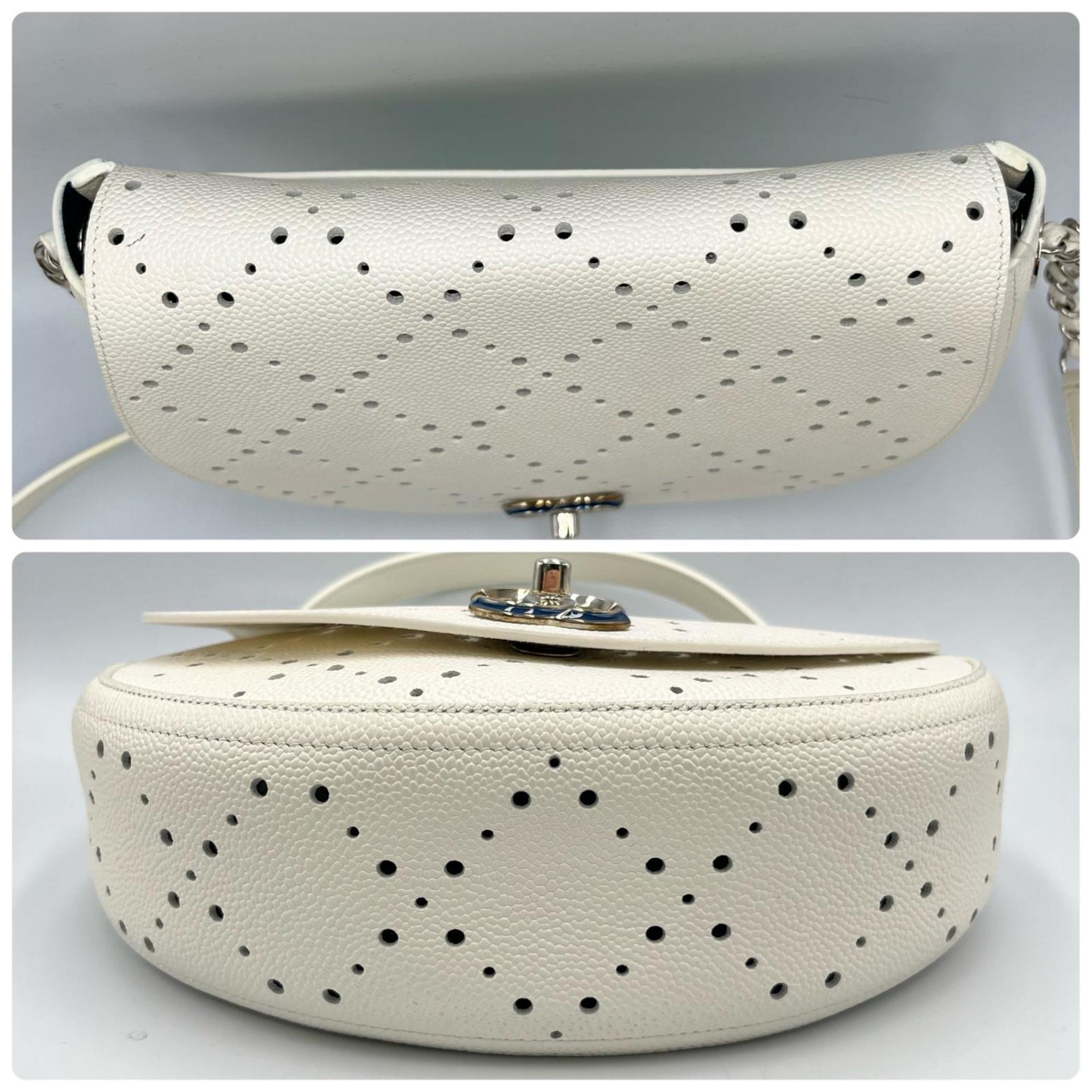 CHANEL Shoulder Bag with Punching Chain, Matte Caviar Leather, White, Women\'s