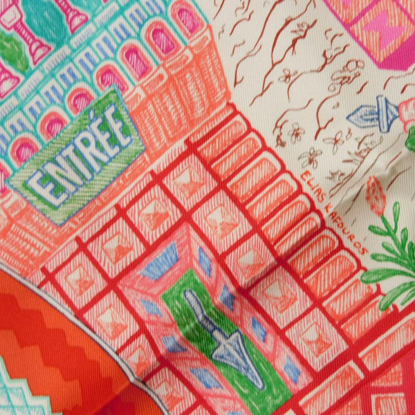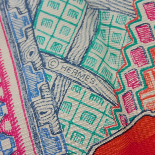 Hermes Hermès Carré 90 Scarf/Muffler in Turquoise, Rose, and Multicolor Character Design, Super Silk Quest, Rouge, Women\'s