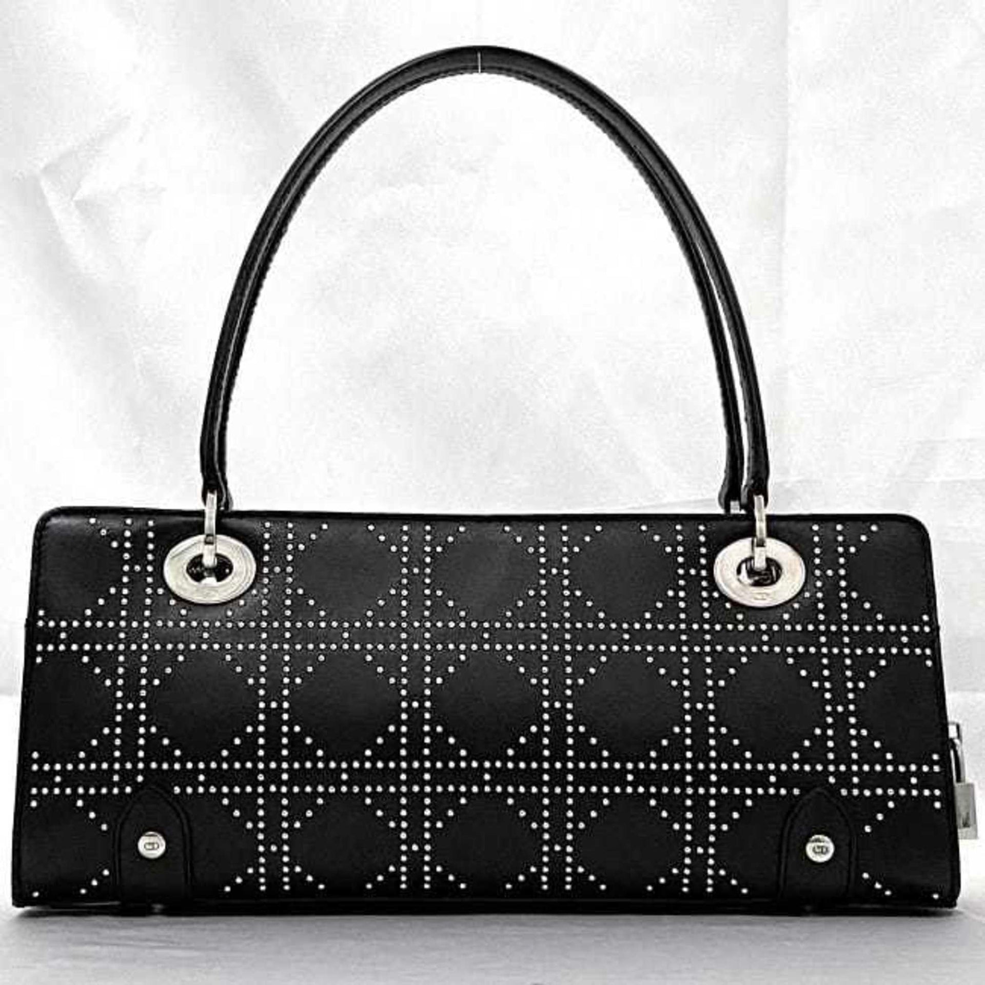 Christian Dior Bag f-21666 Black Lady Leather Studs 05 MA 0073 Charm Handbag Freestanding