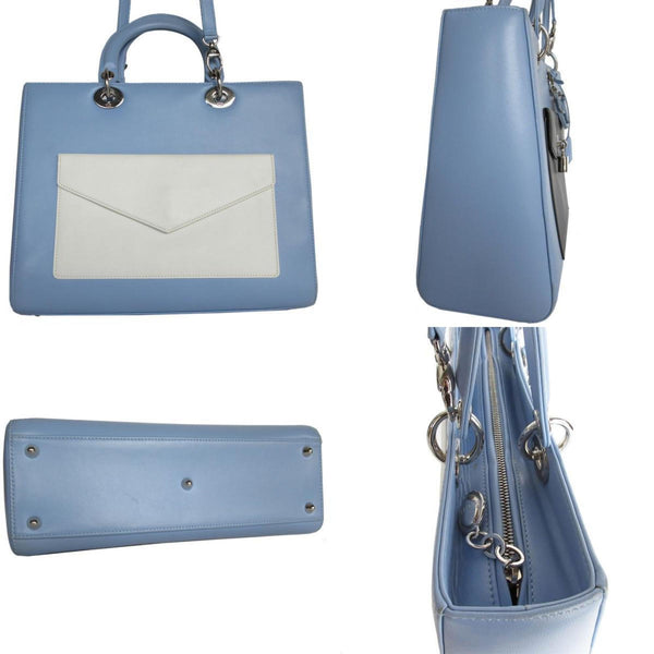 Christian Dior Handbag Shoulder Bag Diorissimo Leather Light Blue x Black White Women\'s k0007