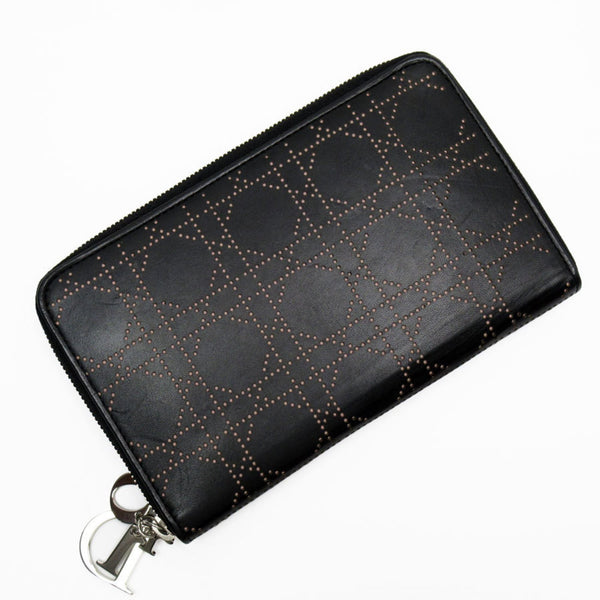 Christian Dior Organizer Cannage Leather Black x Light Pink Men\'s Women\'s t19165a