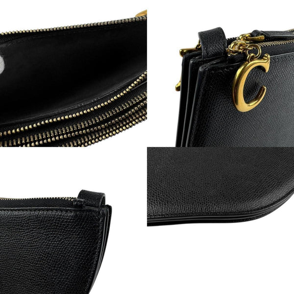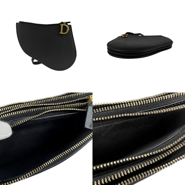 Christian Dior Shoulder Bag Saddle Leather Black Gold Women\'s Z5055