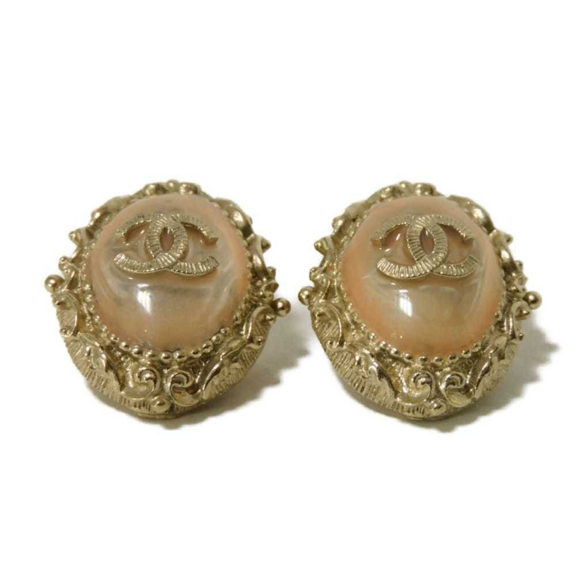 CHANEL Coco Mark Gripoa B13C Earrings, Champagne Gold, Clip-on, CC Mark, Color Stones, Clear Pink Beige, Women\'s
