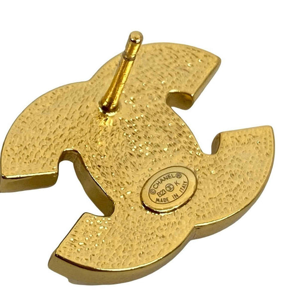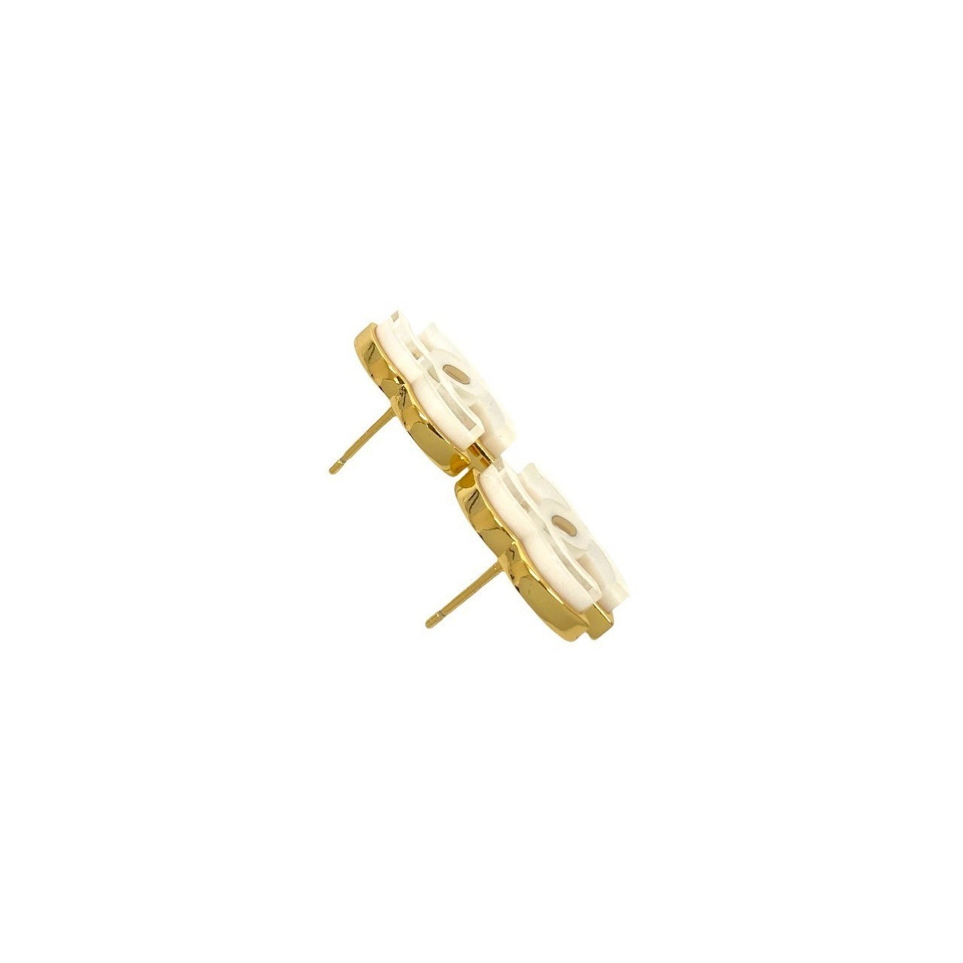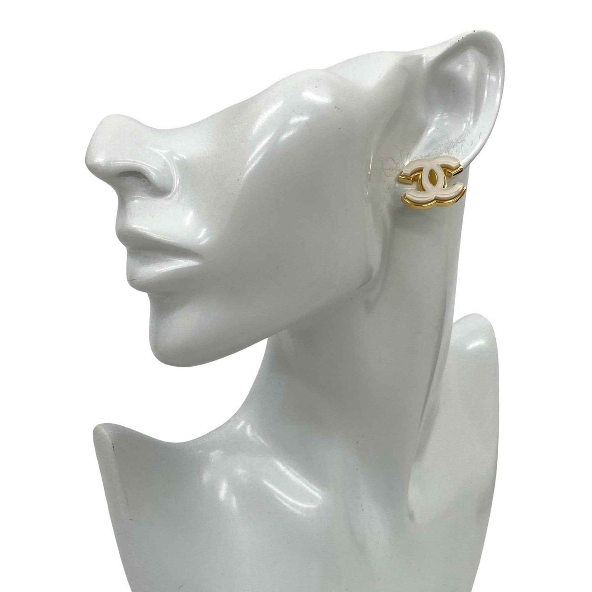 CHANEL Coco Mark Motif Plastic Earrings, Gold and White, 89818
