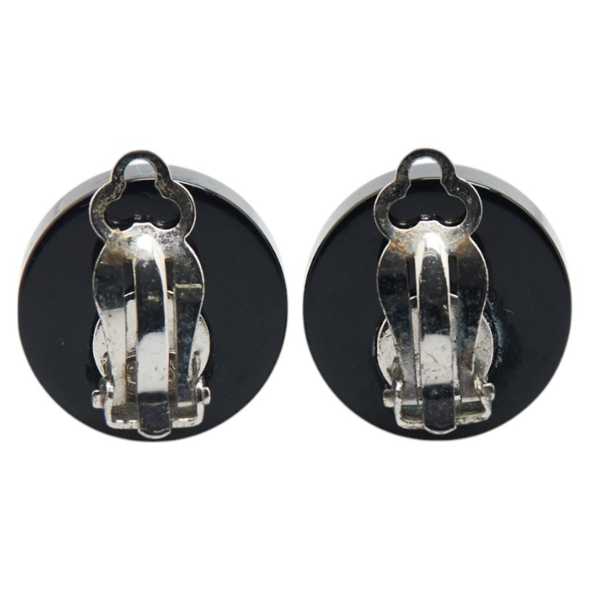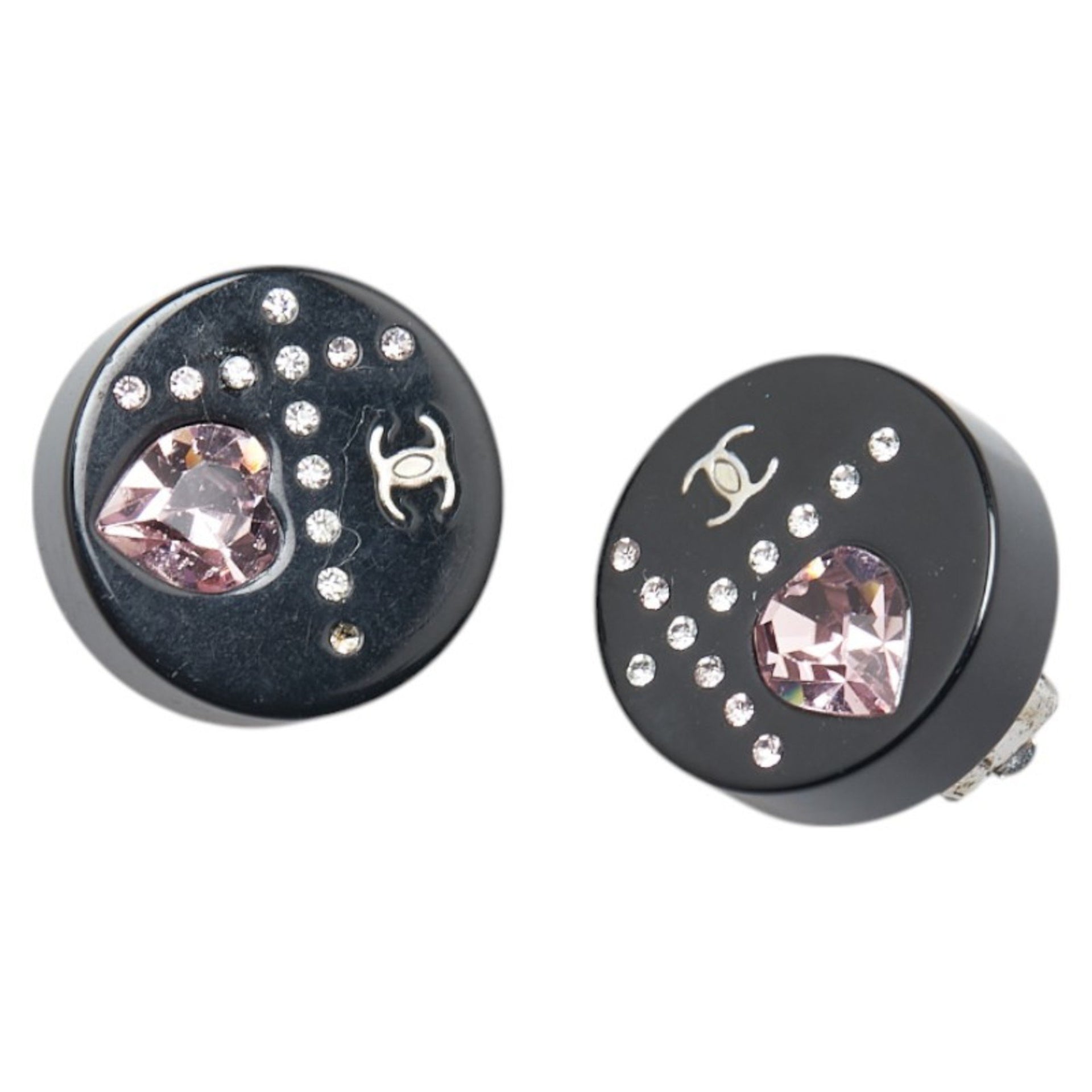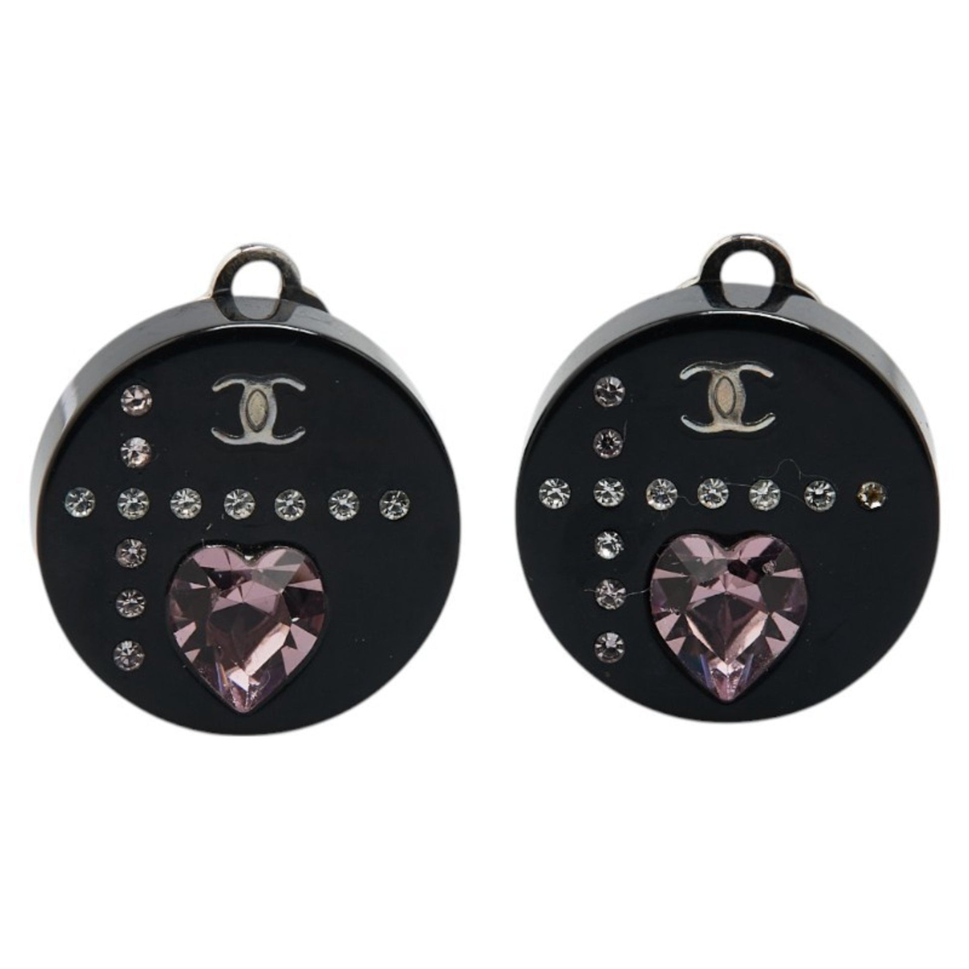 Chanel Coco Mark Rhinestone Heart Earrings Black Gold Plastic Metal Women\'s CHANEL