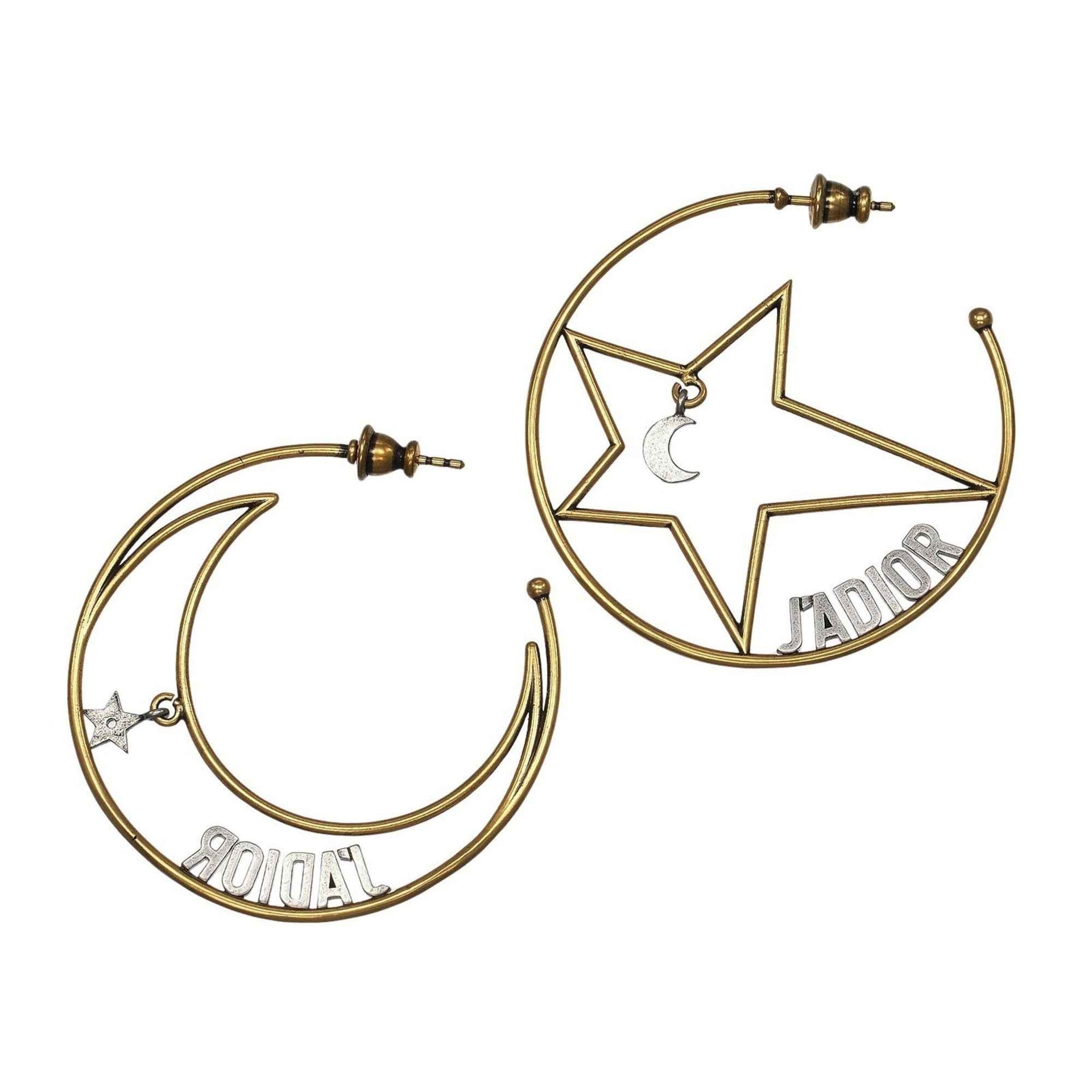 Christian Dior Dior J\'ADIOR Moon & Star Hoop Earrings, Gold Plated, Approx. 7.5g, J\'Adore,
