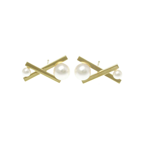 Tasaki Balance Cross Earrings Diamond,Pearl Yellow Gold (18K) Stud Earrings