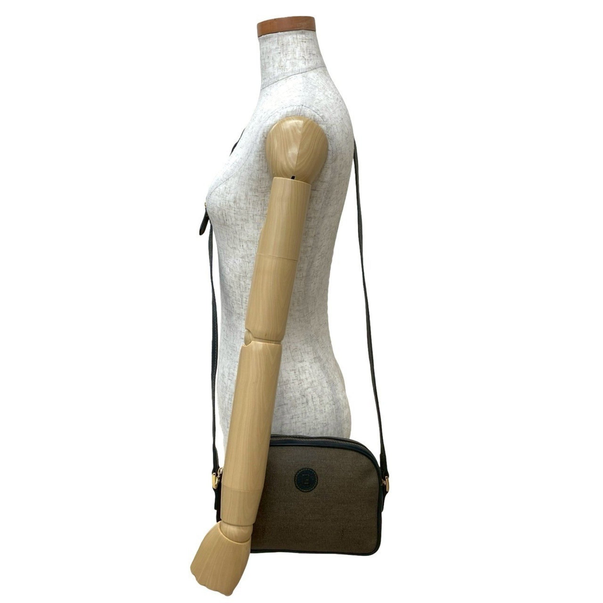 FENDI FF logo motif leather mini shoulder bag/pouch/sacoche in brown 54365