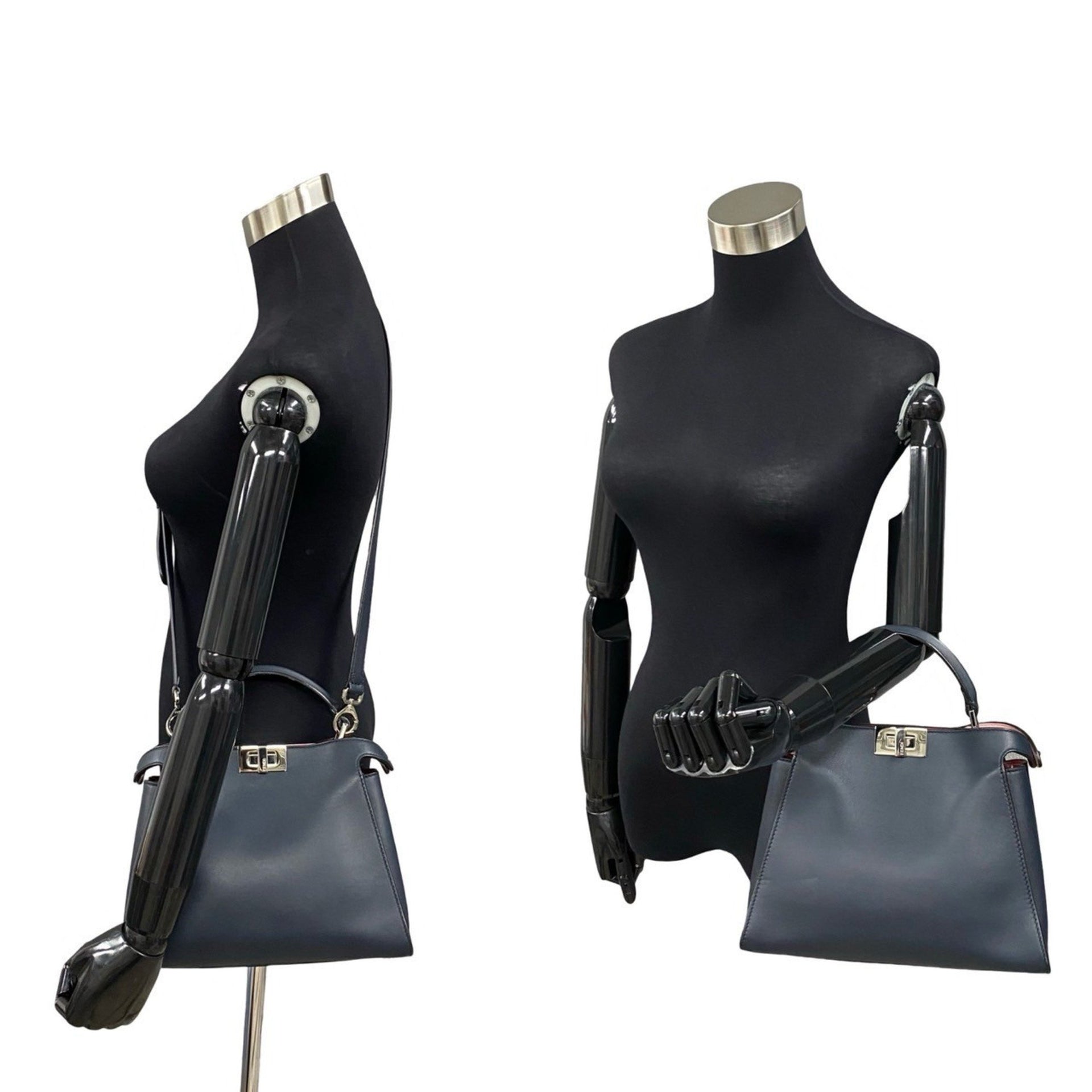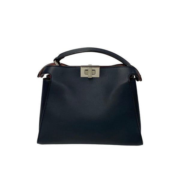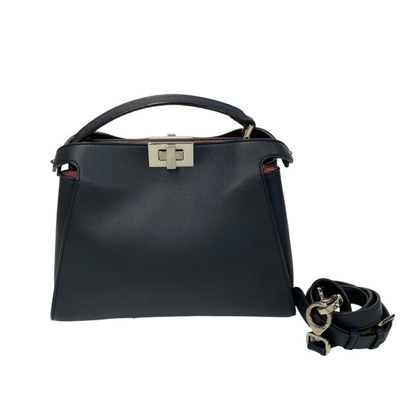 FENDI Peekaboo Essential Leather 2-Way Shoulder Bag/Handbag, Navy, 56141