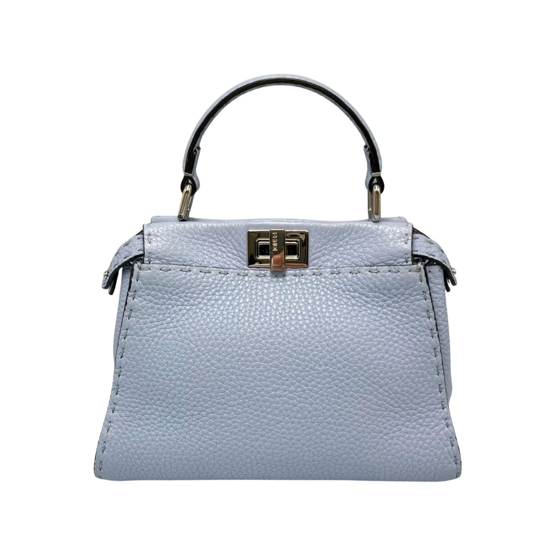 Fendi Peekaboo Mini 2-Way Shoulder Bag in Light Blue Leather for Women