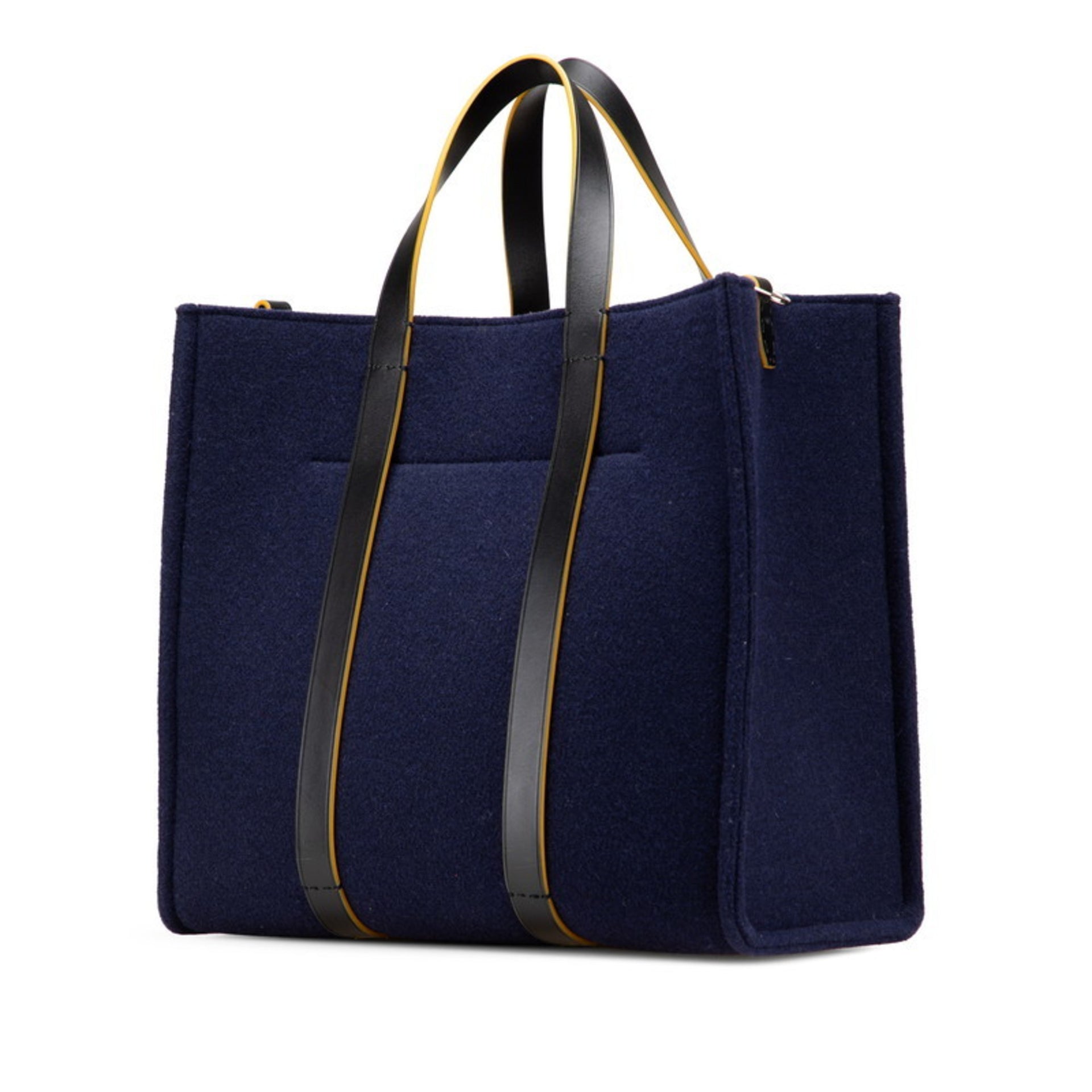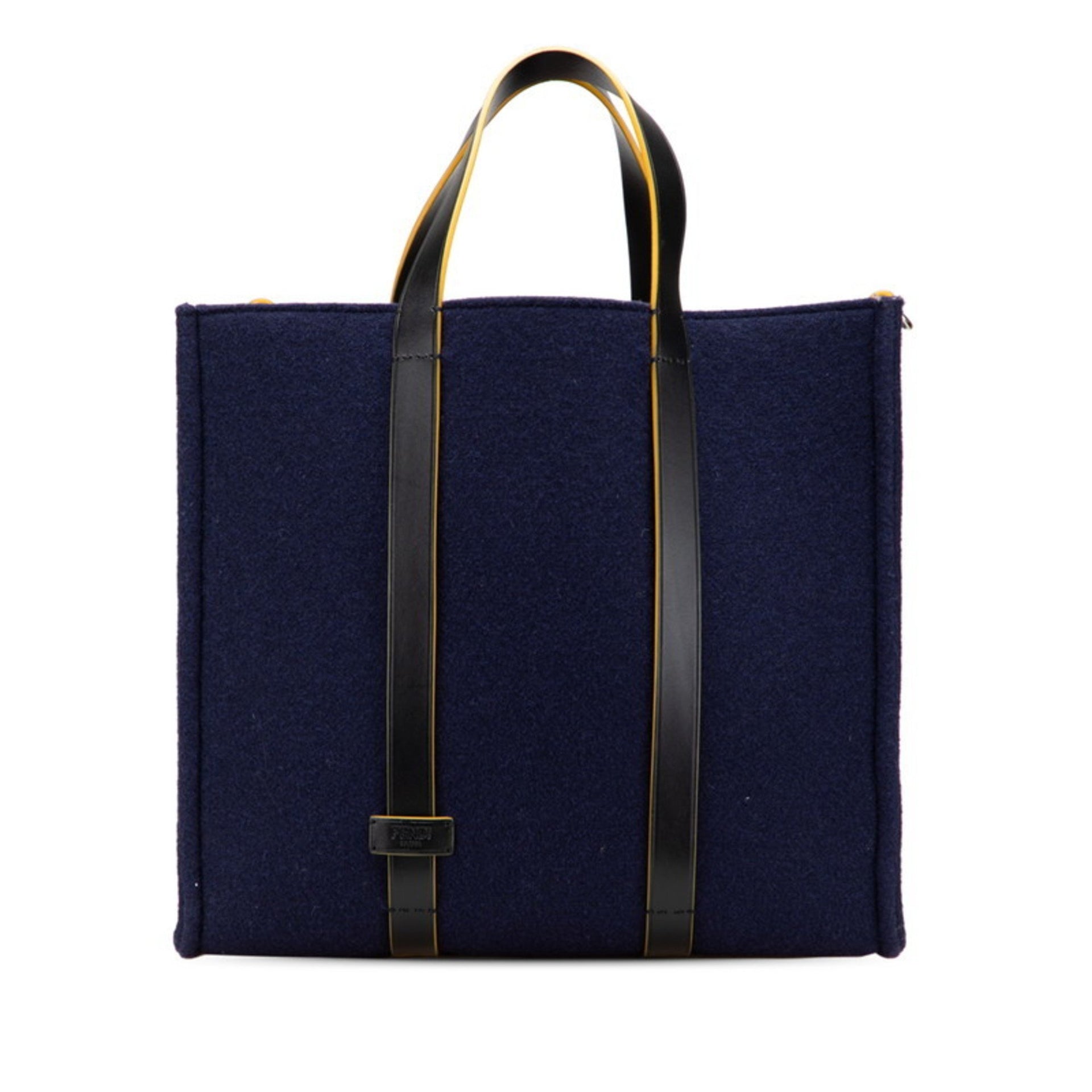 Fendi Tote Bag Handbag 7VA390 Navy Red Wool Leather Women\'s FENDI