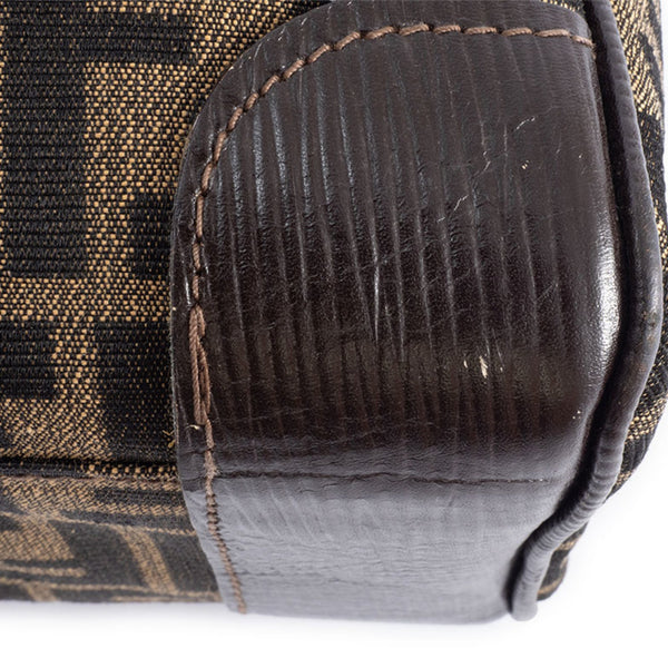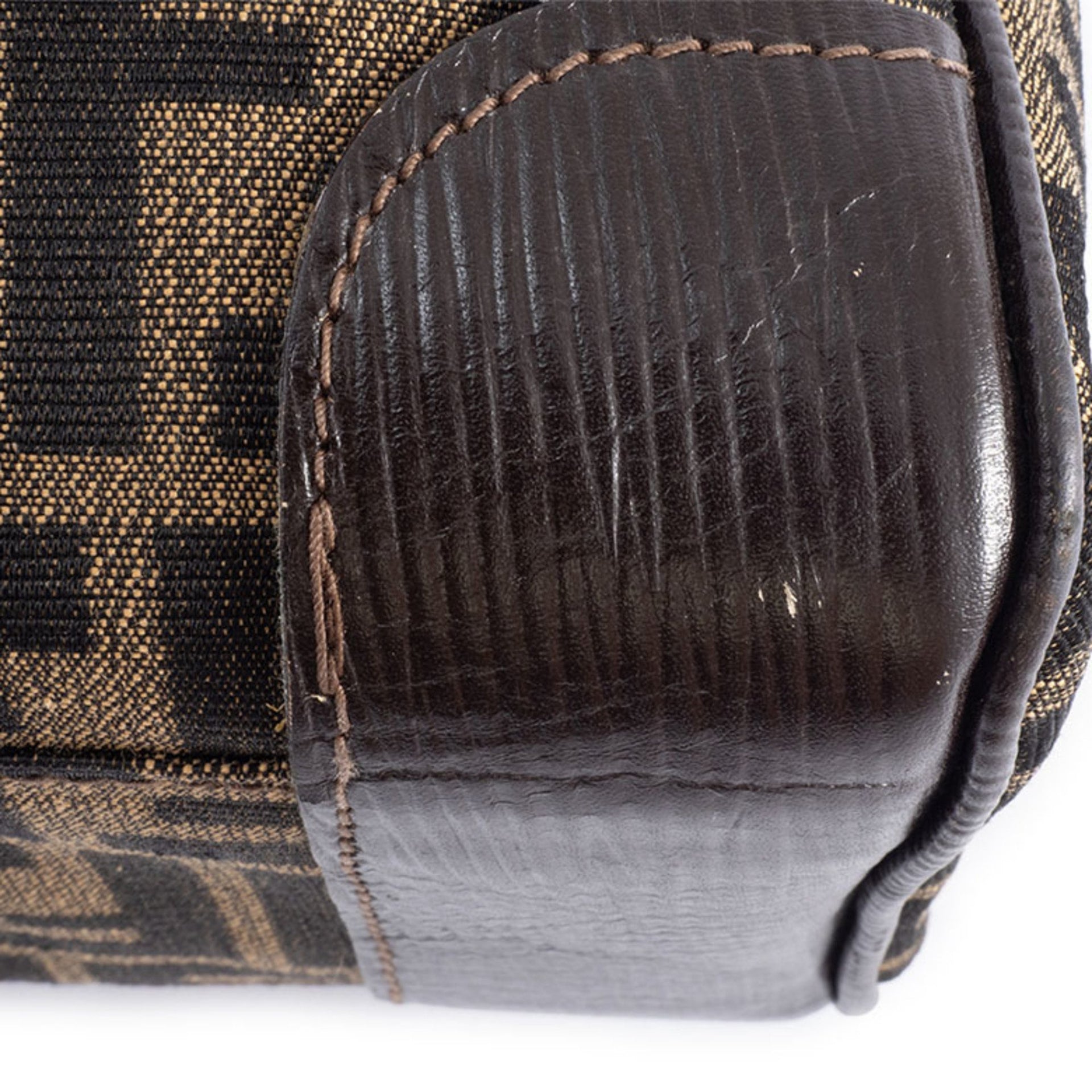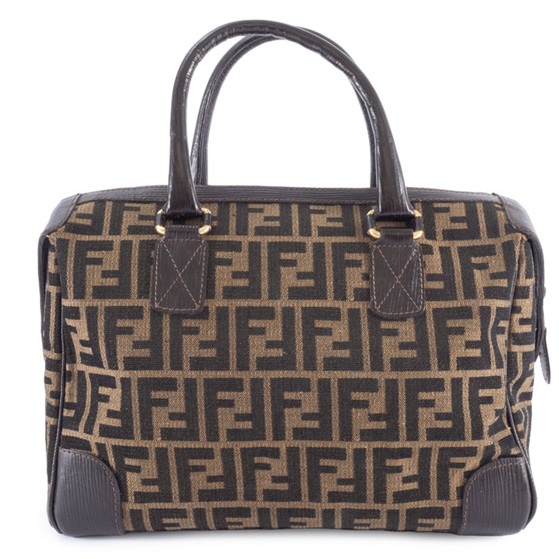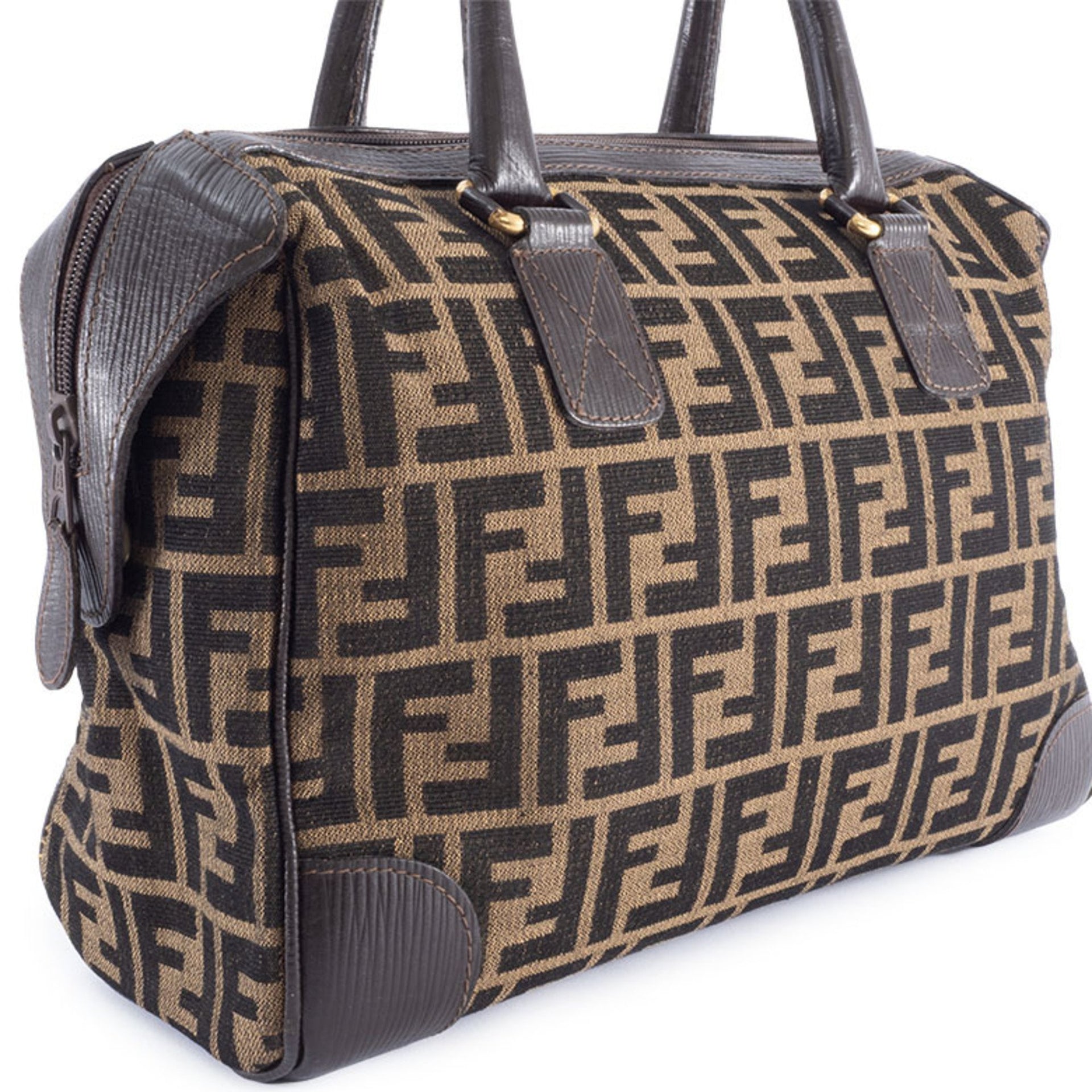 Fendi Zucca handbag in canvas and leather beige brown. Women\'s Boston bag.