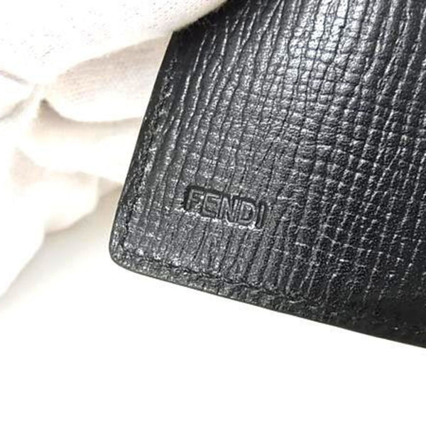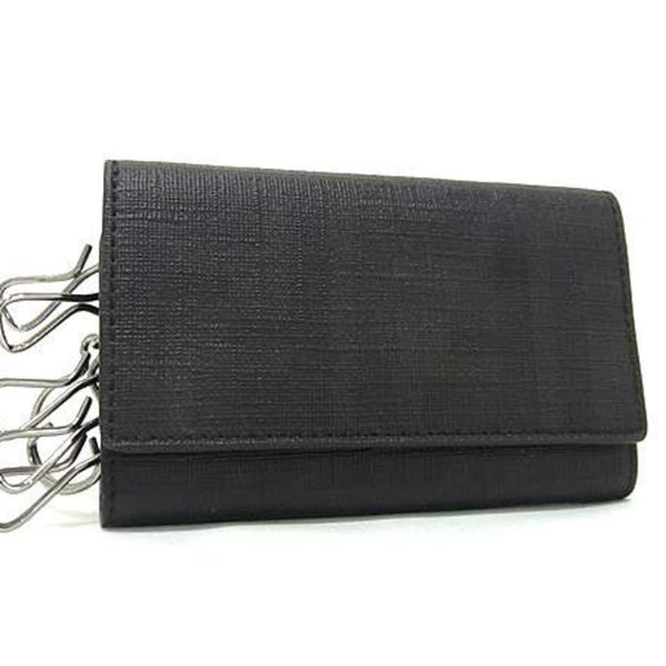 FENDI Zucca Key Case 8AP079 Black Leather 6-Ring for Men and Women