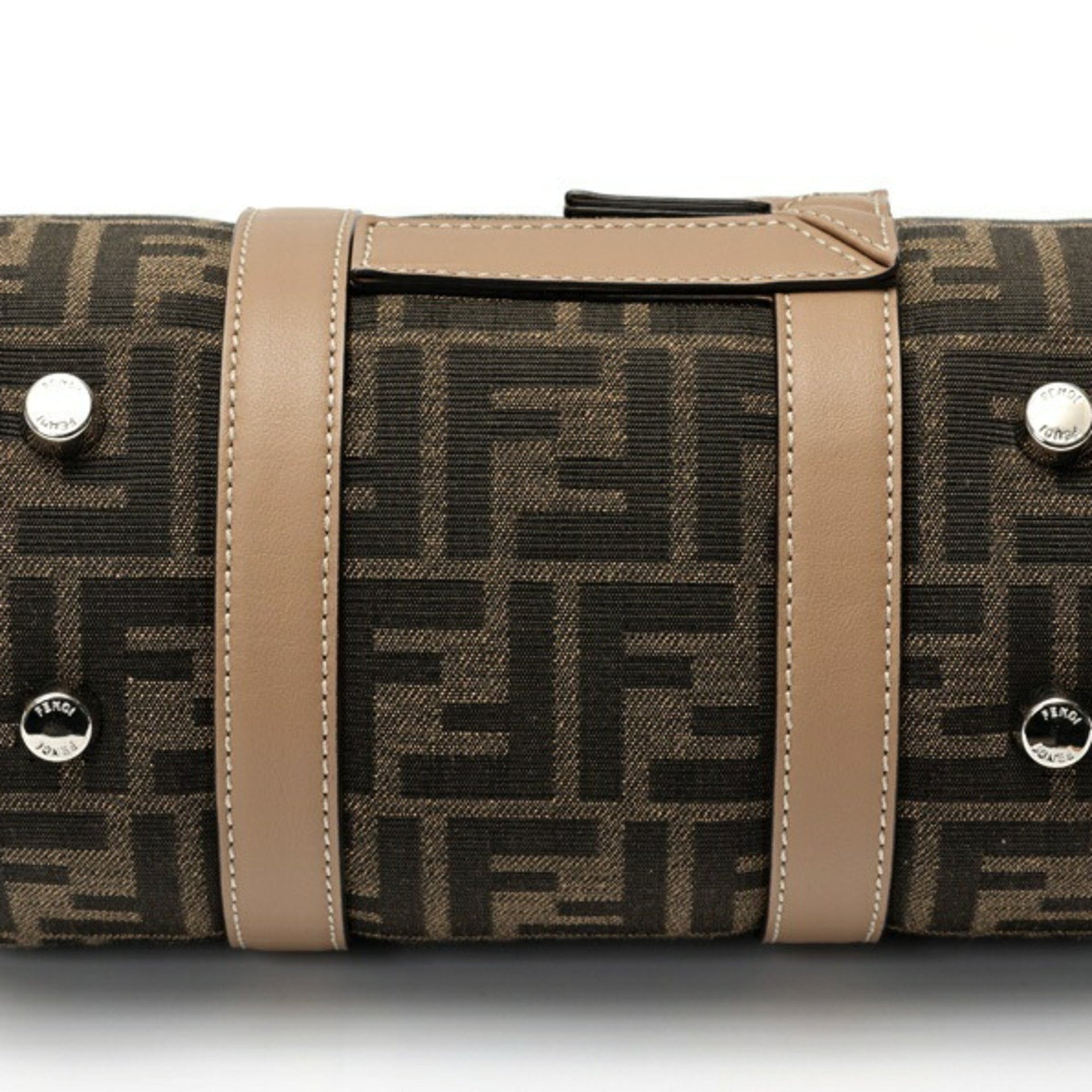FENDI Zucca Small Boston Bag Shoulder 7VA570 Canvas Leather Brown Greige K-158807
