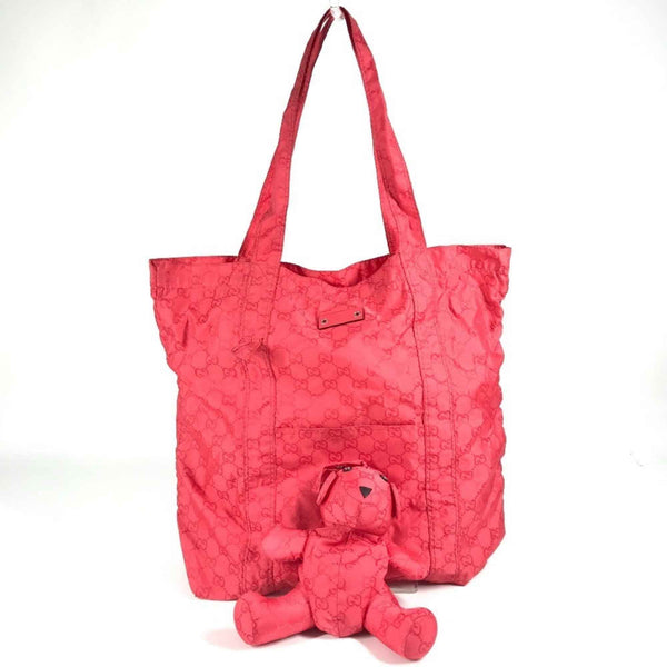 GUCCI 223669 GG Teddy Bear Eco Bag, Tote Shopping Shoulder Nylon, Unisex, Red