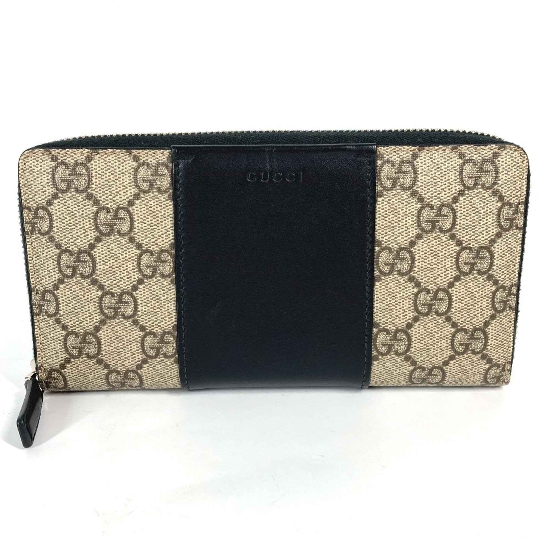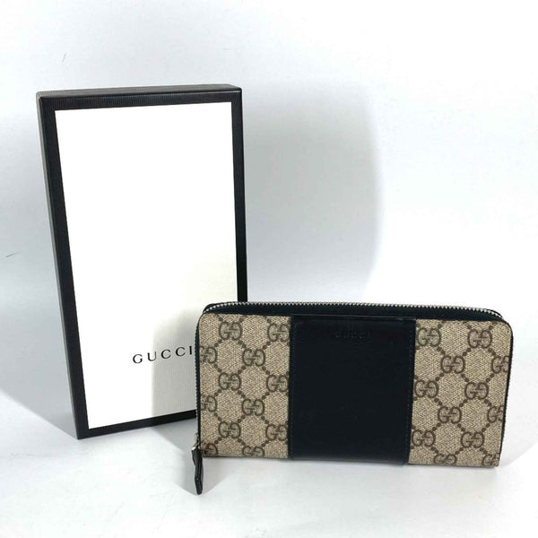 GUCCI 451249 GG Supreme Round Zip Long Wallet in PVC/Leather, Beige