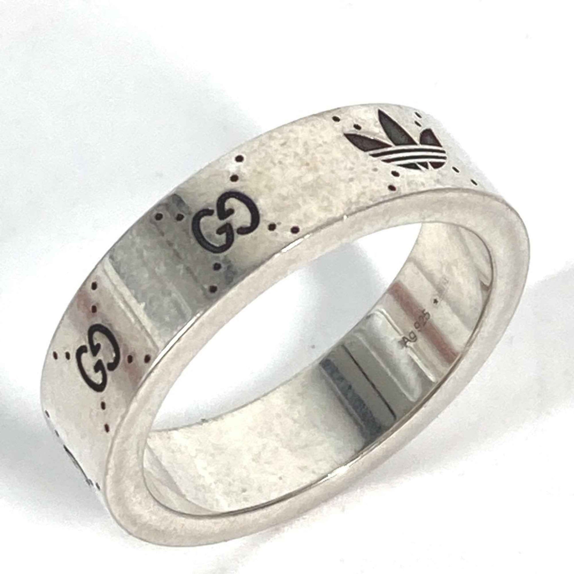 GUCCI 702766 adidas Collaboration Engraved Wide Ring, AG925 Silver, Men\'s, Size 19