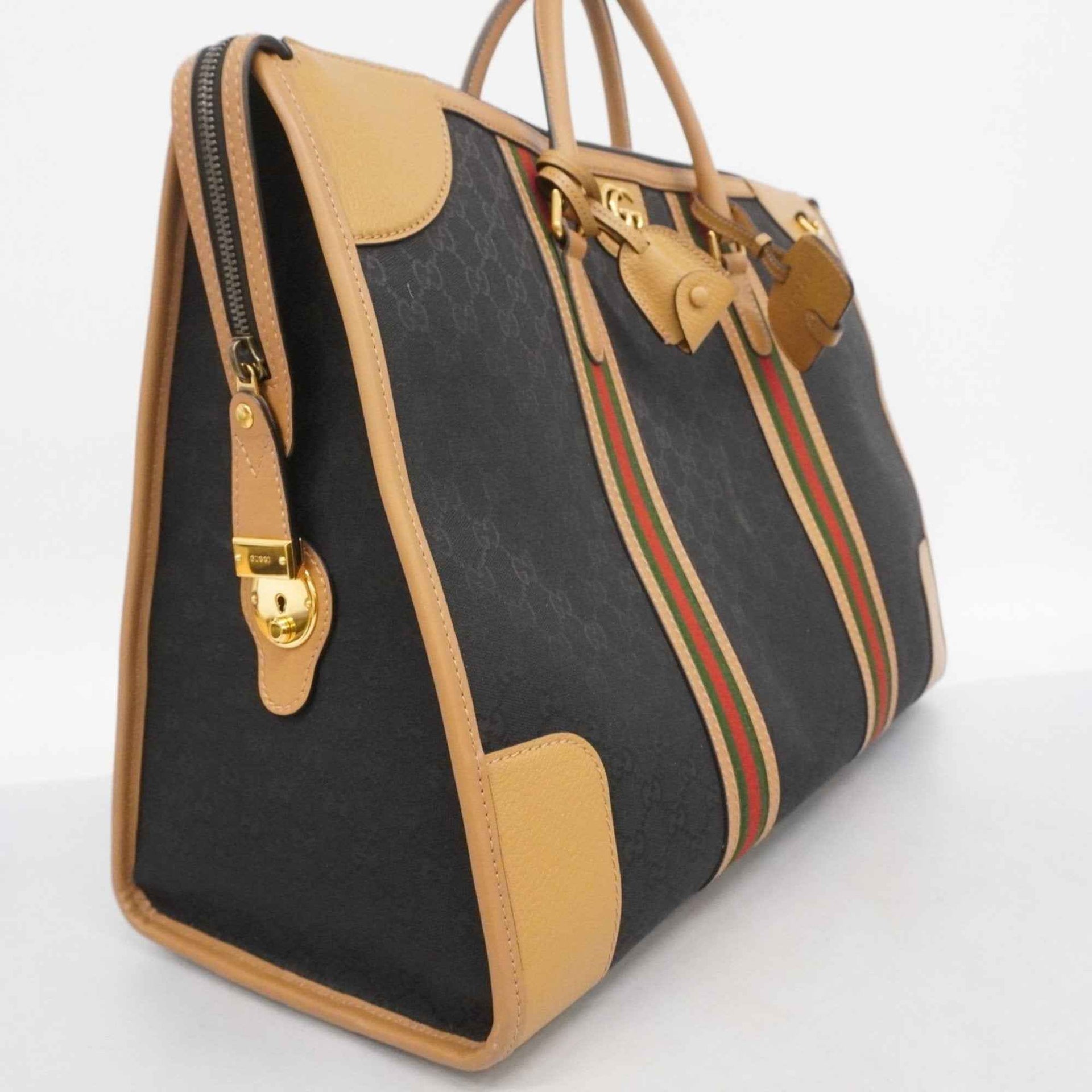 Gucci Boston Bag, GG Canvas, Sherry Line, 715773, Black and Beige, 2-Way Men\'s Women\'s