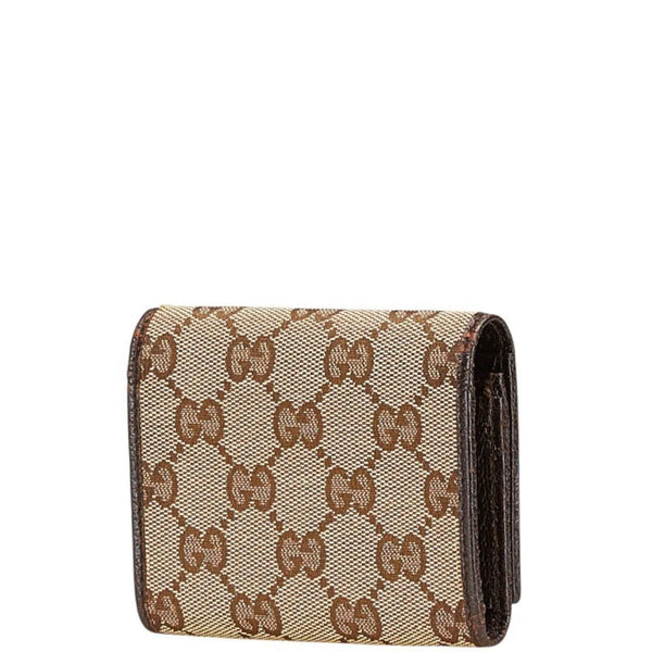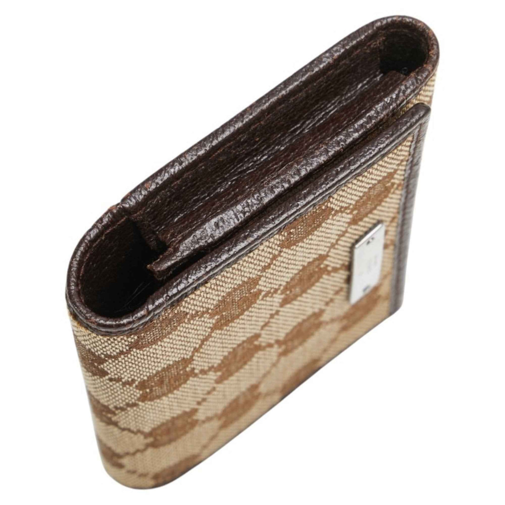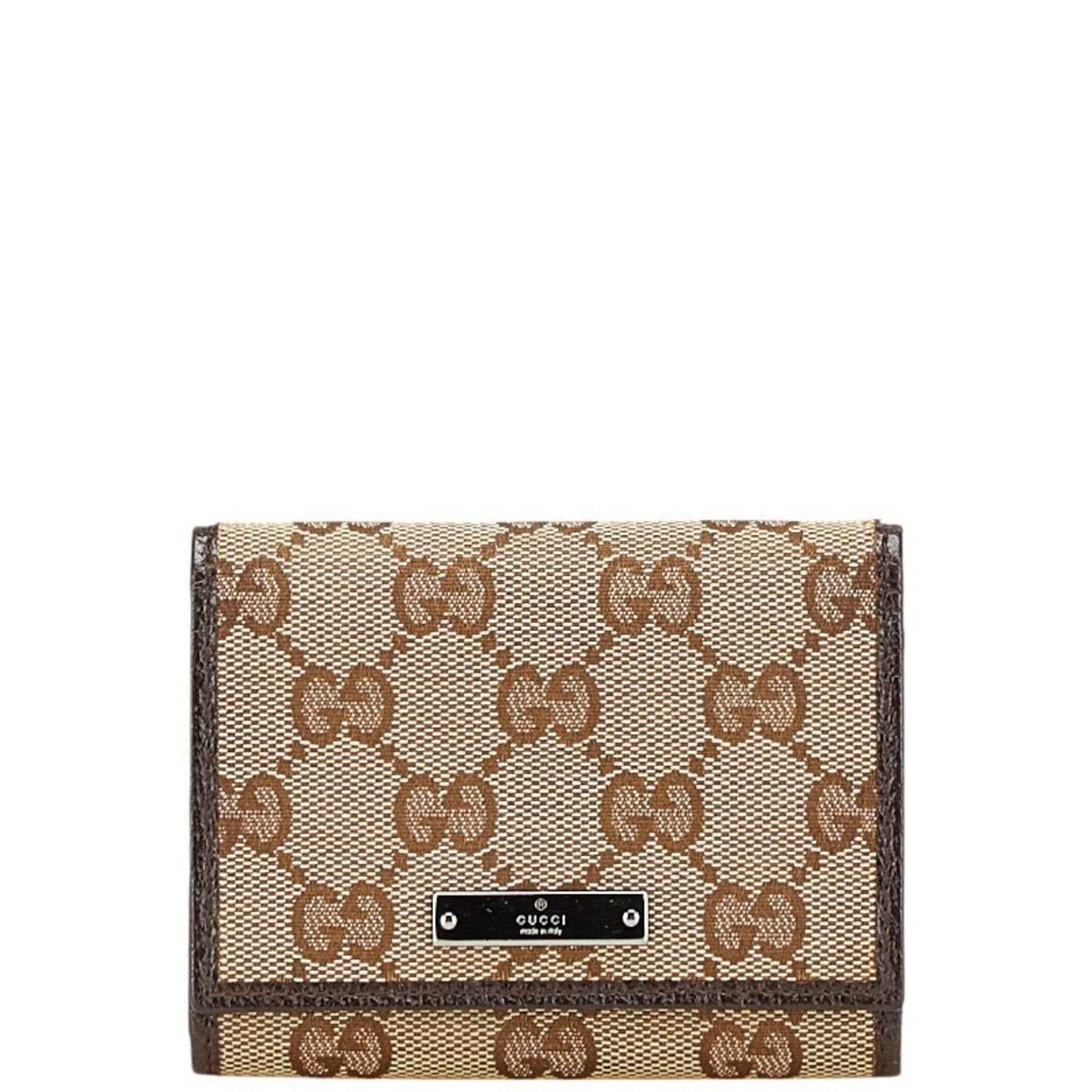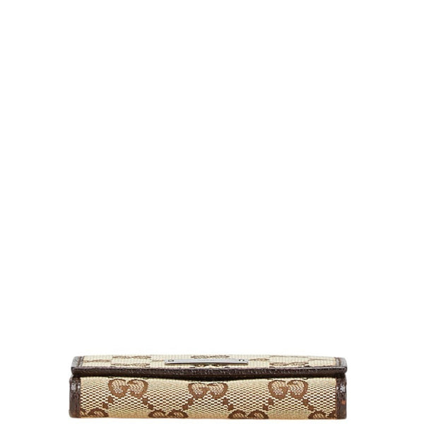 Gucci GG Canvas Logo Plate Card Case 131886 Beige Dark Brown Leather Women\'s GUCCI