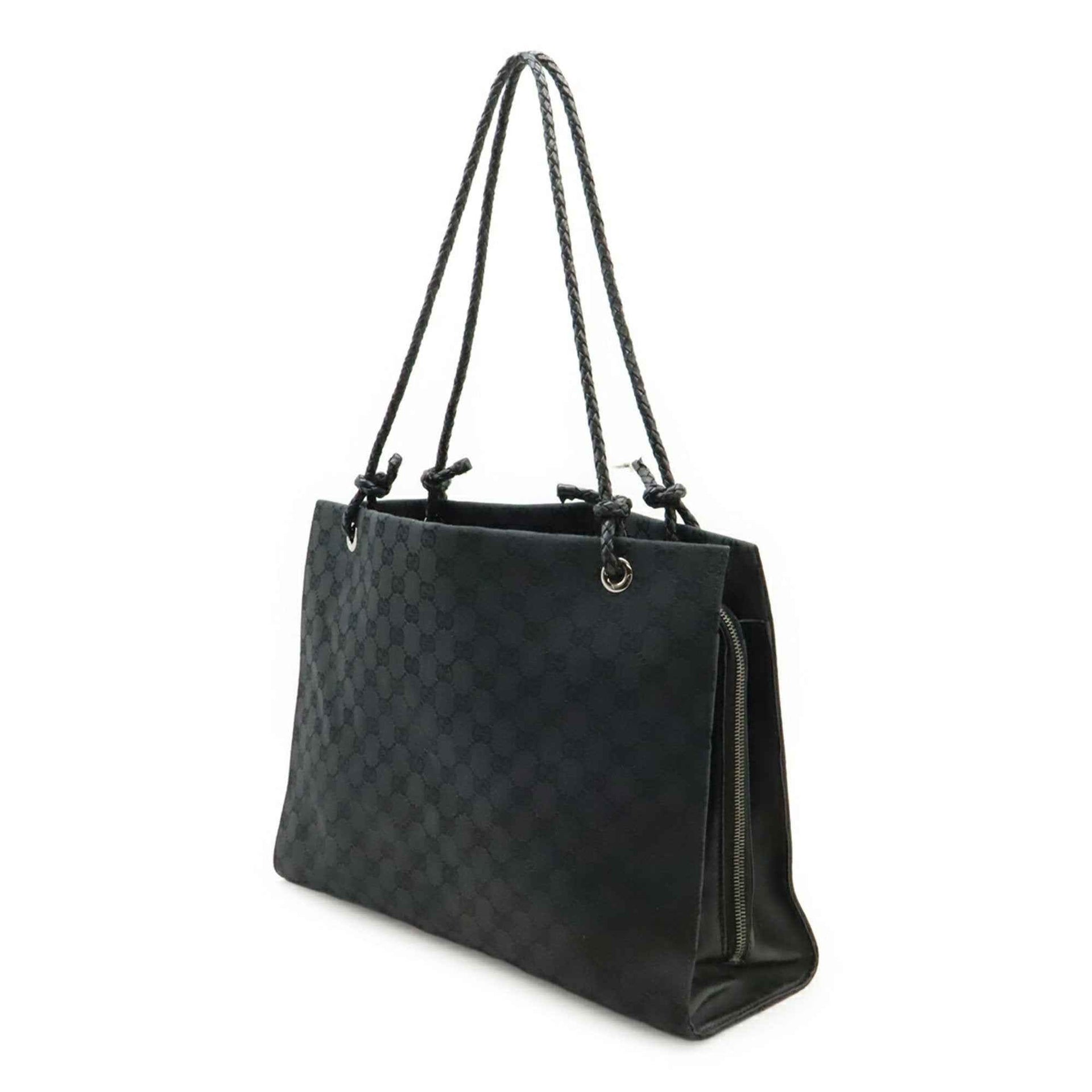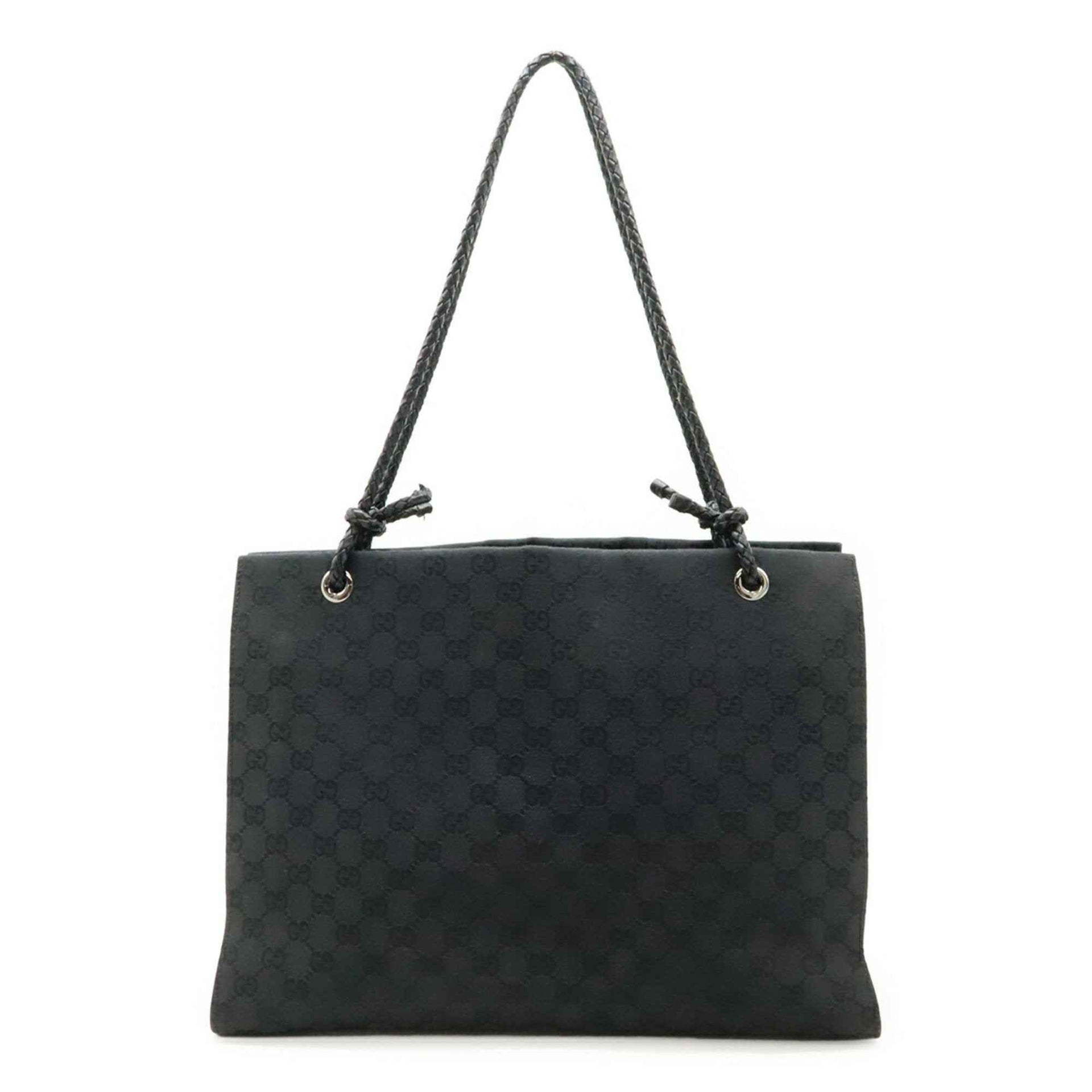 GUCCI GG Canvas Tote Bag Shoulder Leather Black 109140