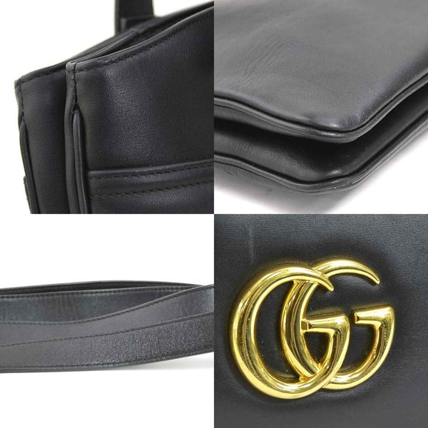 Gucci GG Marmont Leather Shoulder Bag in Black and Gold, Women\'s, 550130 e60771a