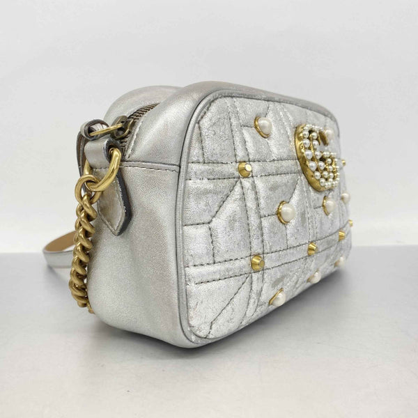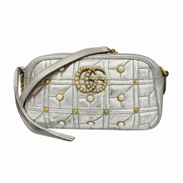 Gucci GG Marmont Shoulder Bag 447632 Leather Silver Women\'s P1630306