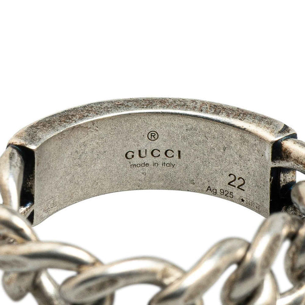 Gucci Gormet Chain Logo Plate Ring #22 Turquoise Blue SV925 Silver Enamel Men\'s GUCCI