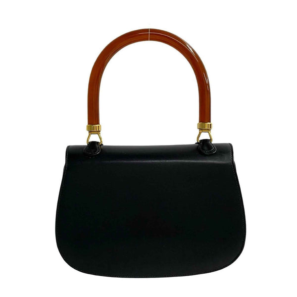 GUCCI Old Gucci Turnlock Leather Genuine Handbag Mini Tote Bag Black 41525