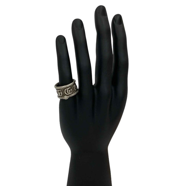 GUCCI Snake Double G Motif Ring in Sterling Silver, Size 18, 83451