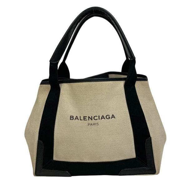 BALENCIAGA 339933 Navy Cabas S Handbag Tote Bag Beige Unisex