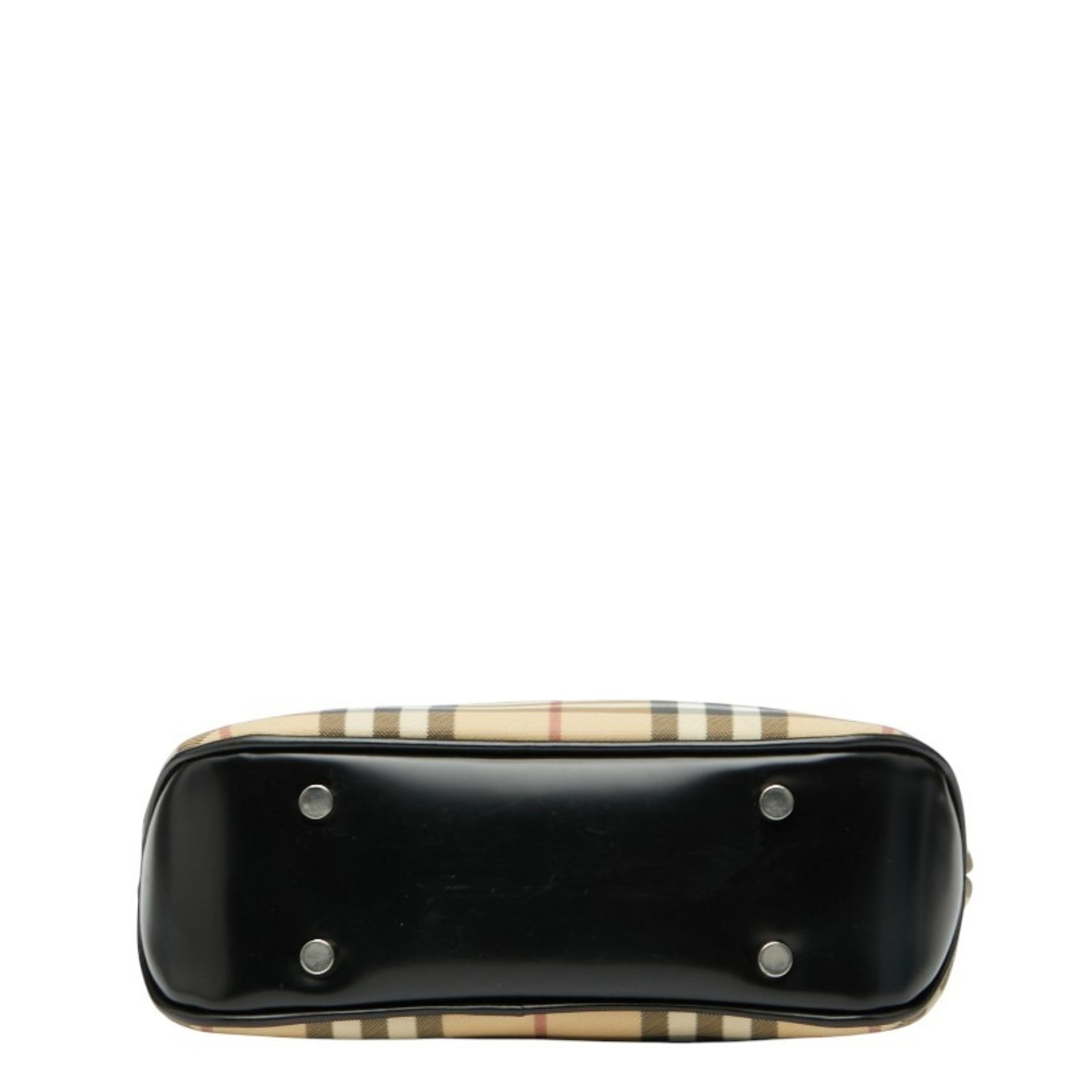 Burberry Nova Check Handbag Tote Bag Beige Black Leather Women\'s BURBERRY