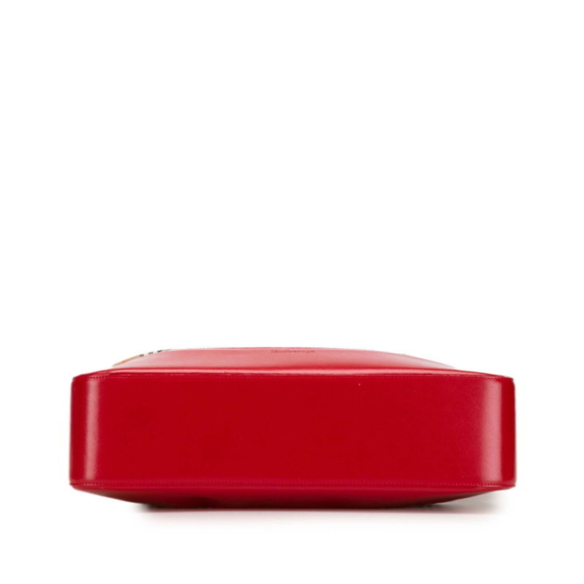 Burberry Nova Check Shadow Horse Handbag Tote Bag Beige Red Canvas Leather Women\'s BURBERRY