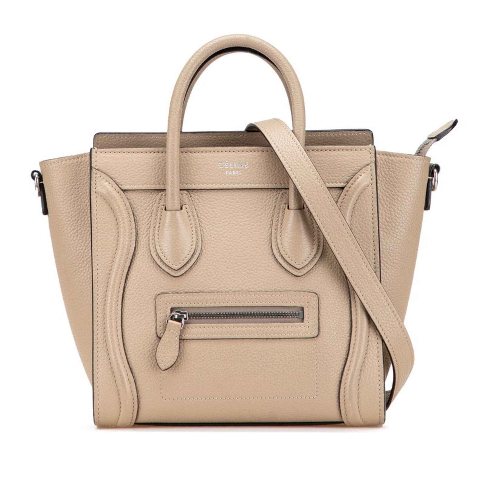 Celine Luggage Nano Shopper Handbag/Shoulder Bag, 2-Way, Beige/Greige Leather, Women\'s, CELINE